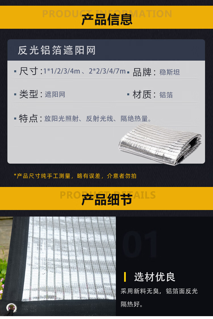 稳斯坦 反光铝箔遮阳网 W445 2*7m遮阳网 1包