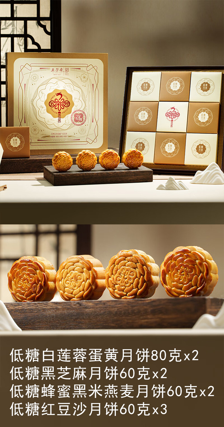 五芳斋 月养五芳低糖月饼礼盒 580g 1盒