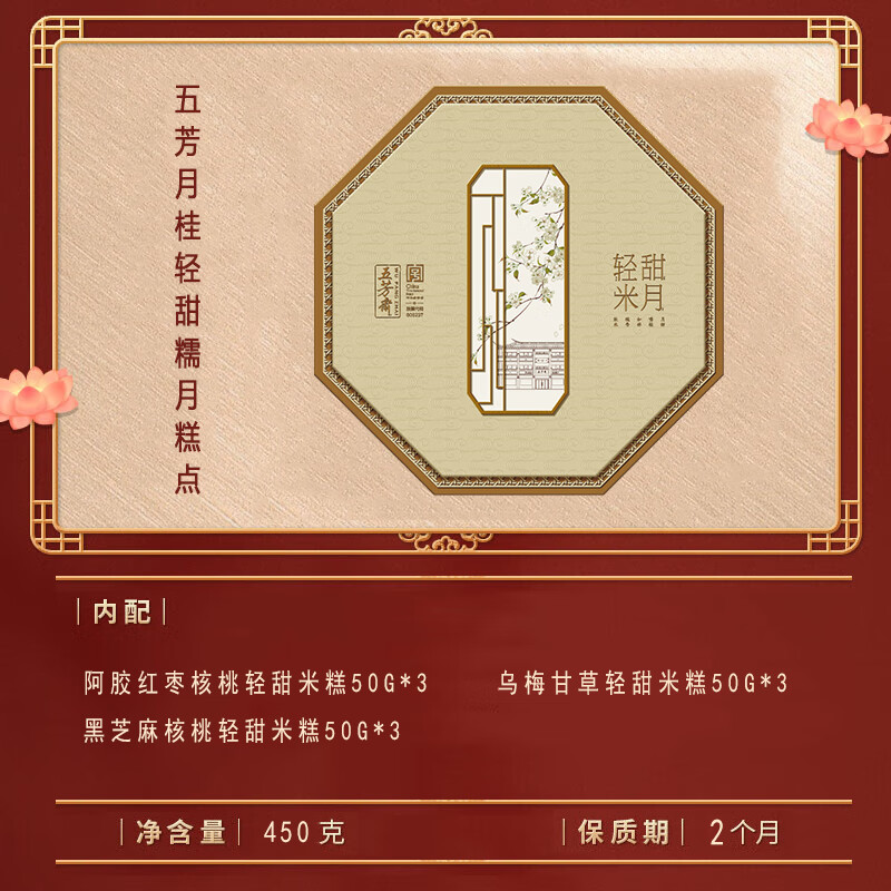 五芳斋 月桂轻甜糯月糕点礼盒 450g 1盒