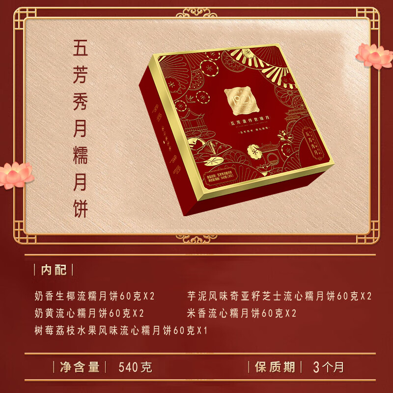 五芳斋 秀月糯月饼礼盒 540g 1盒