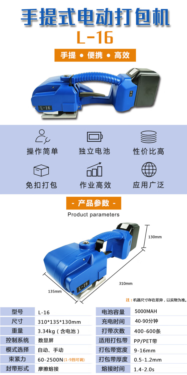 冰禹 手提式电动打包机 L-16 升级款 一电一充 5000mAH 1个