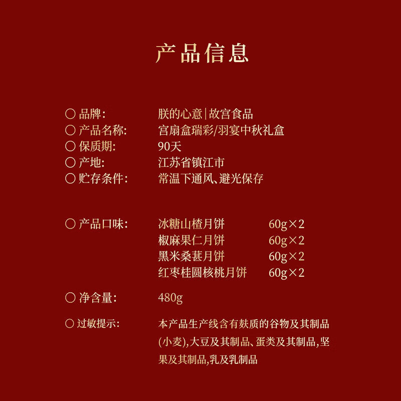故宫食品 朕的心意高端月饼礼盒 宫扇盒-羽宴 480g 1盒