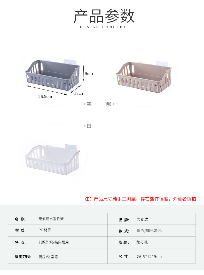 优麦达 沥水置物架 26.5*12*9 灰色 2个 1件