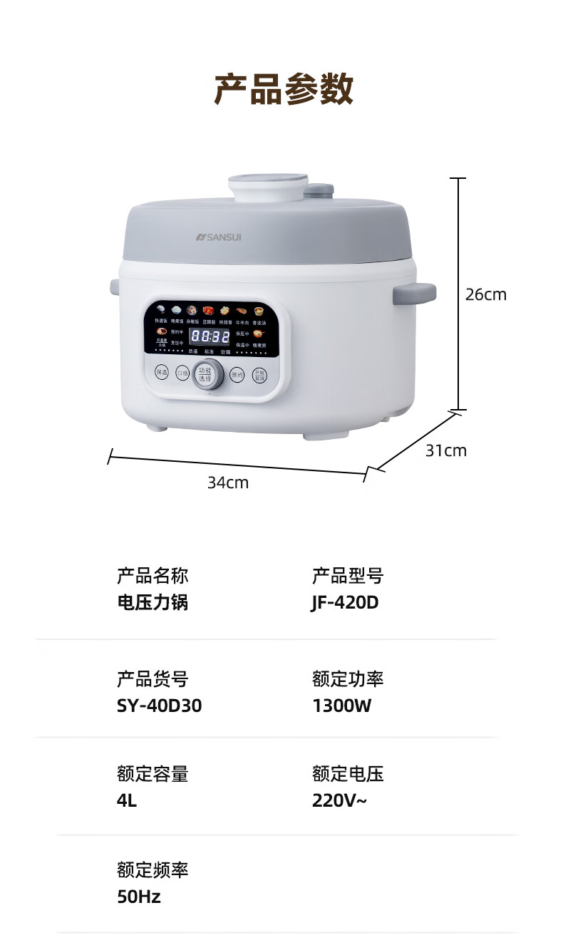 山水 能电压力锅 SY-40D30 4L 1300W 1个