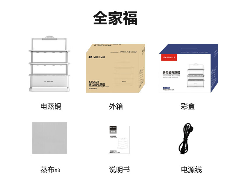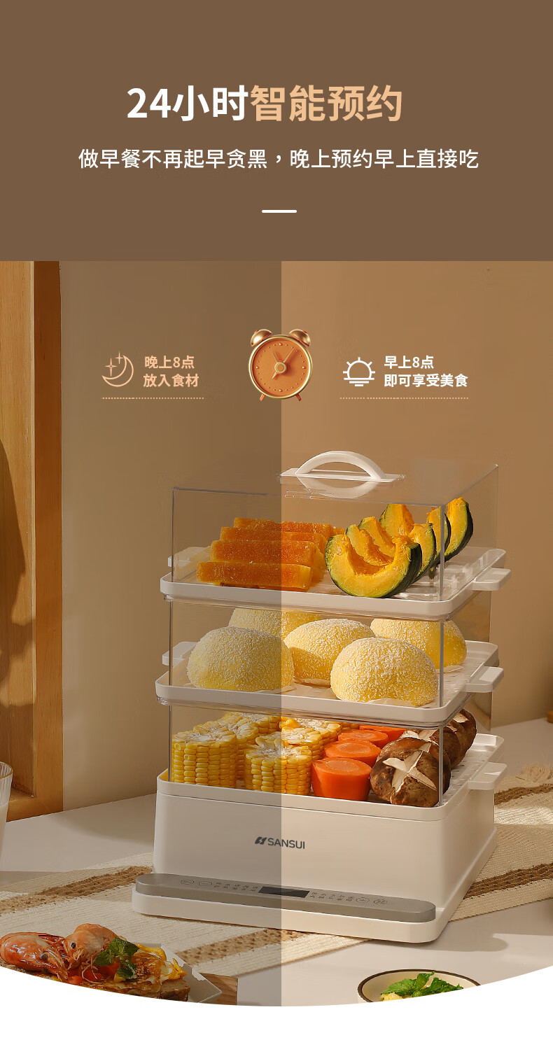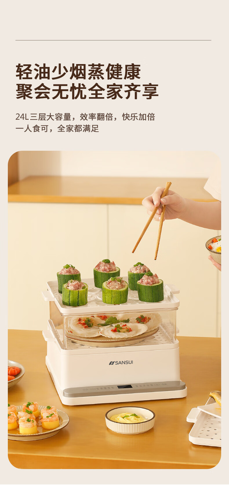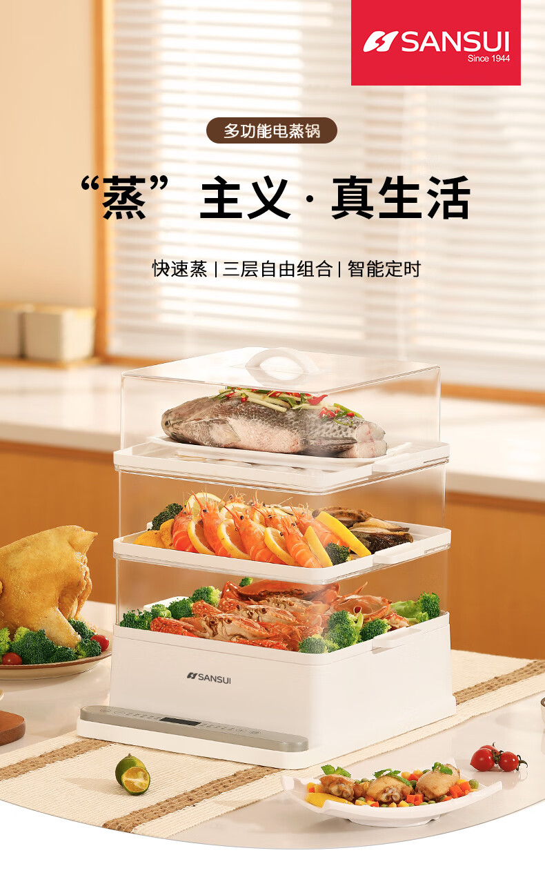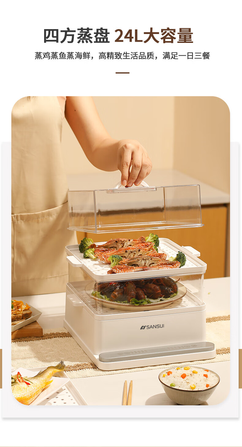 山水 多功能三层电蒸锅 SZG60K 白色 24L 1个