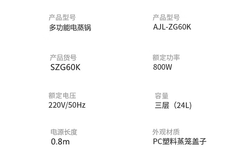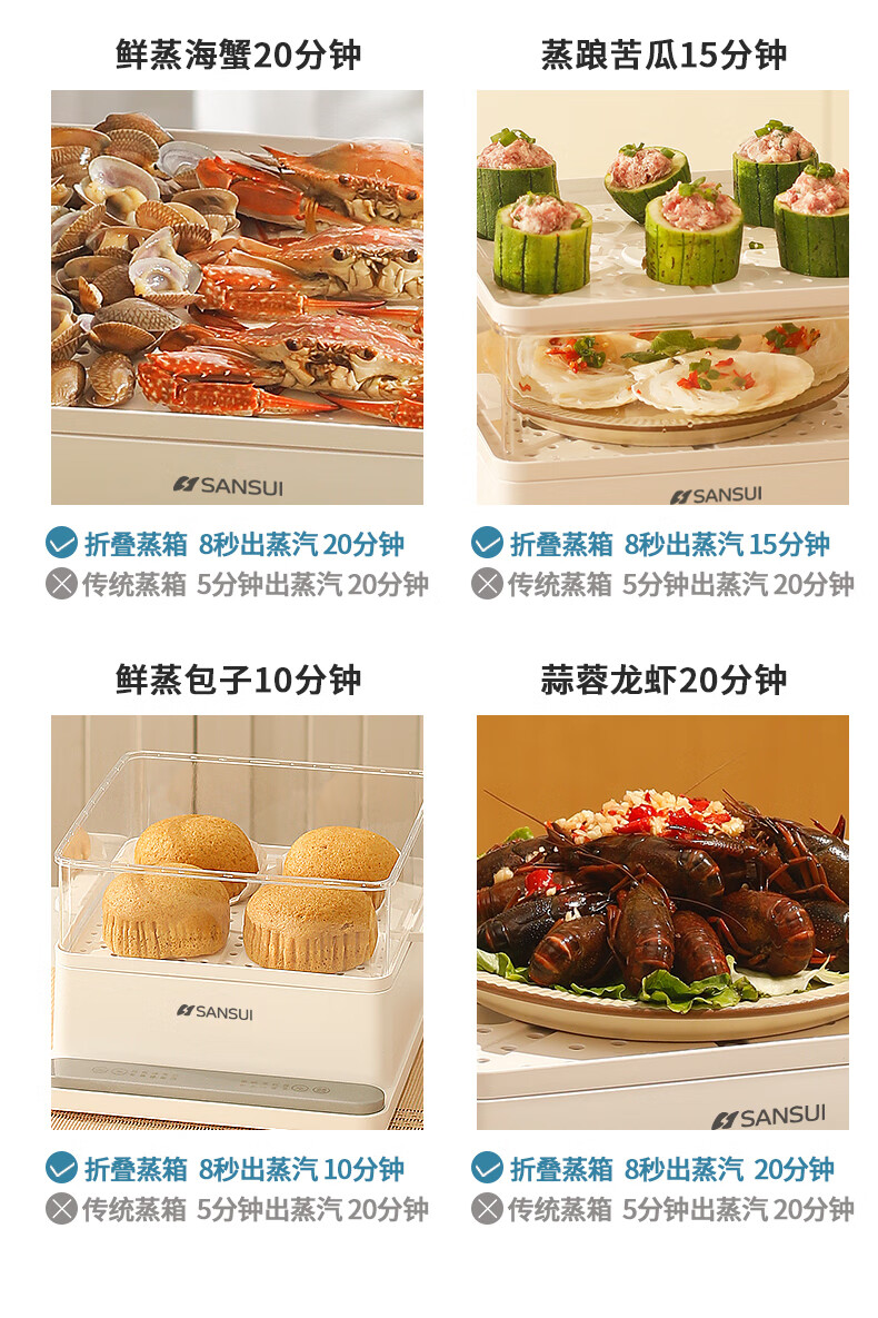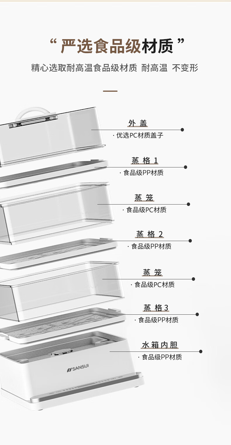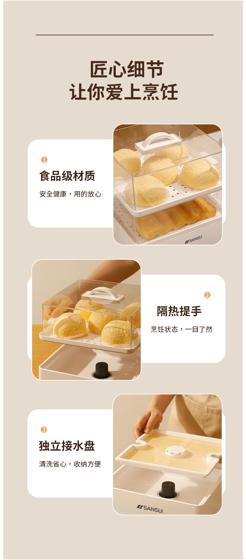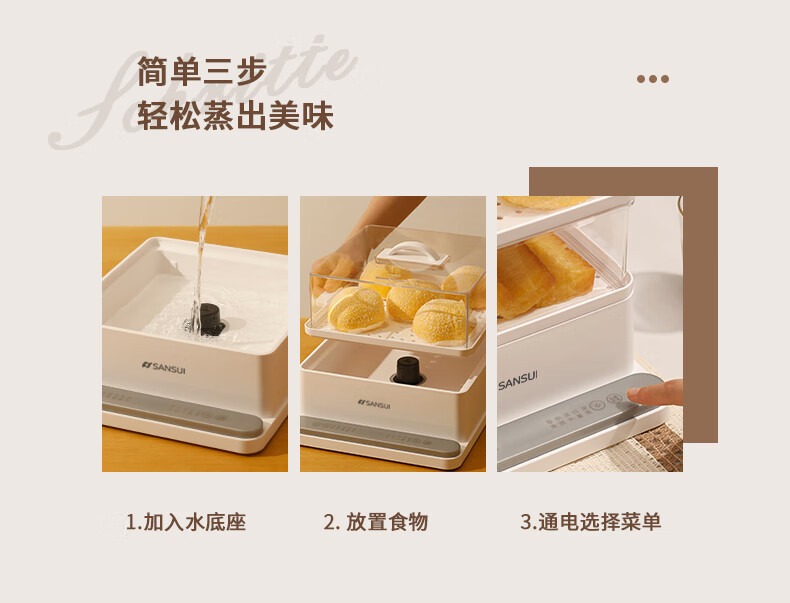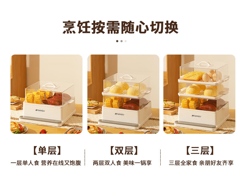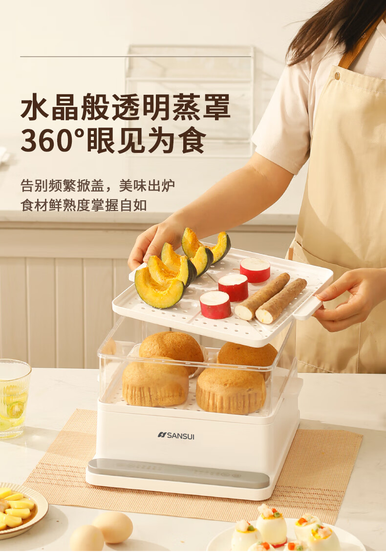 山水 多功能三层电蒸锅 SZG60K 白色 24L 1个