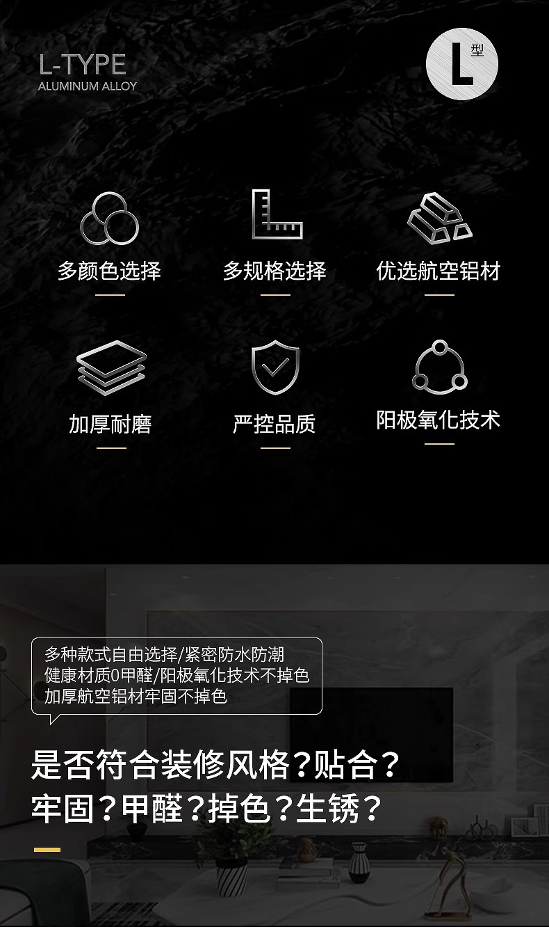 国产通用 铝合金L型收边条 JW-L15A 绅士灰 15x15mm 3米 1根
