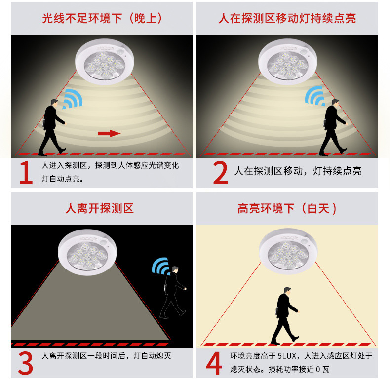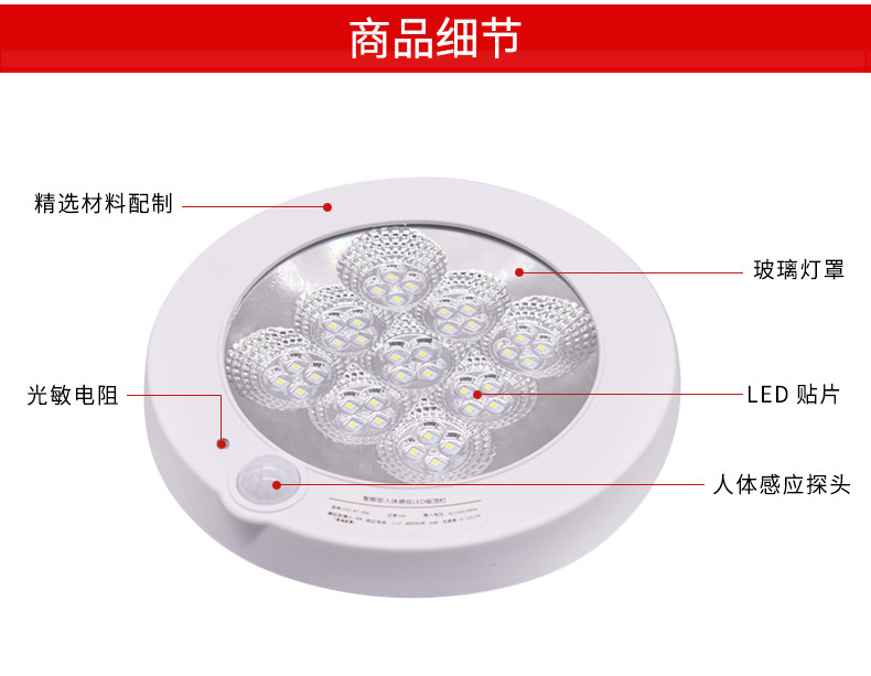 百士安 楼道人体感应灯 8W 直径22cm 1个