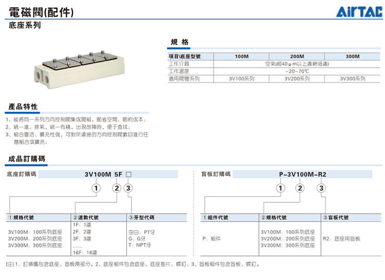 亚德客 3V200系列配件底座 3V200M-4F 1个