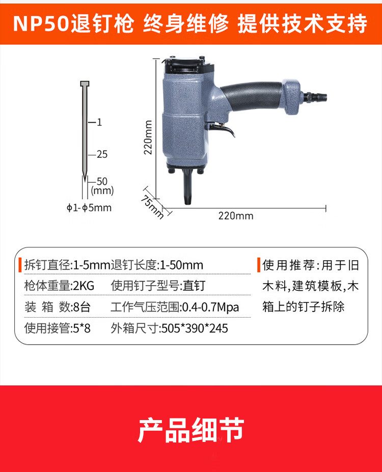 冰禹 气动退钉枪 KO1-4 NP50(标准款)+9米弹簧气管 1套