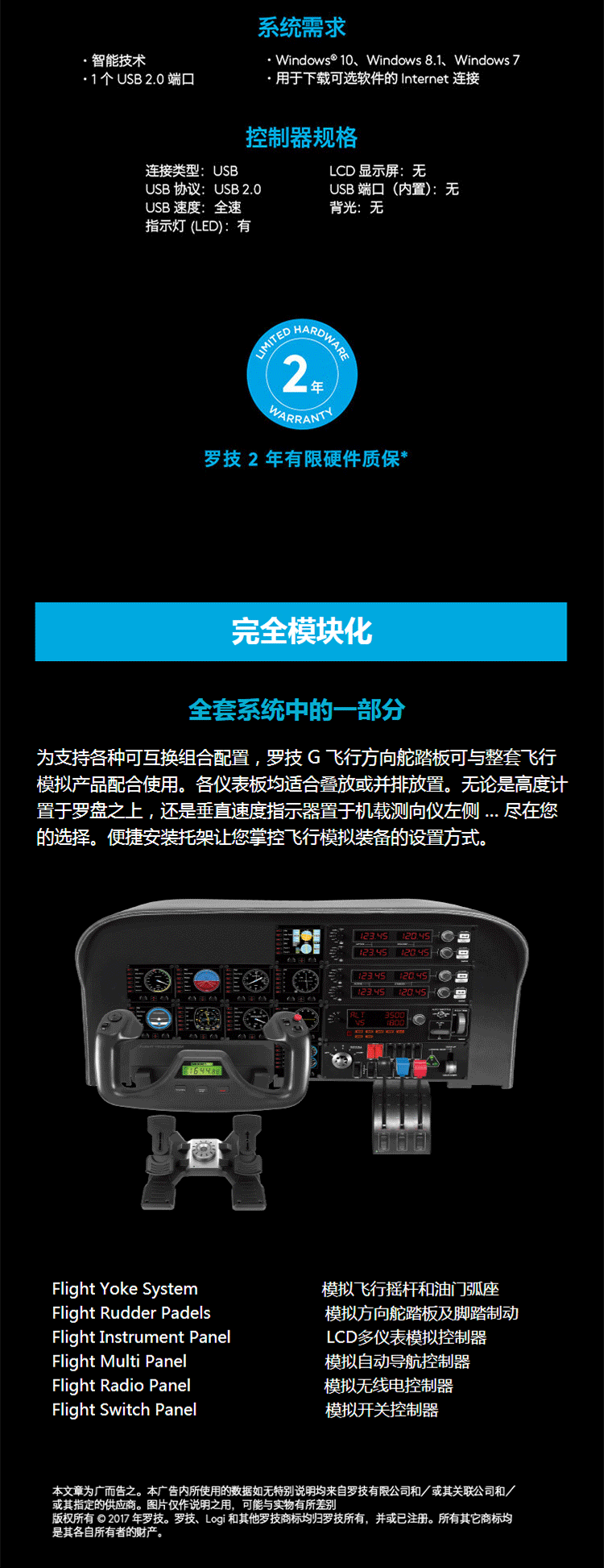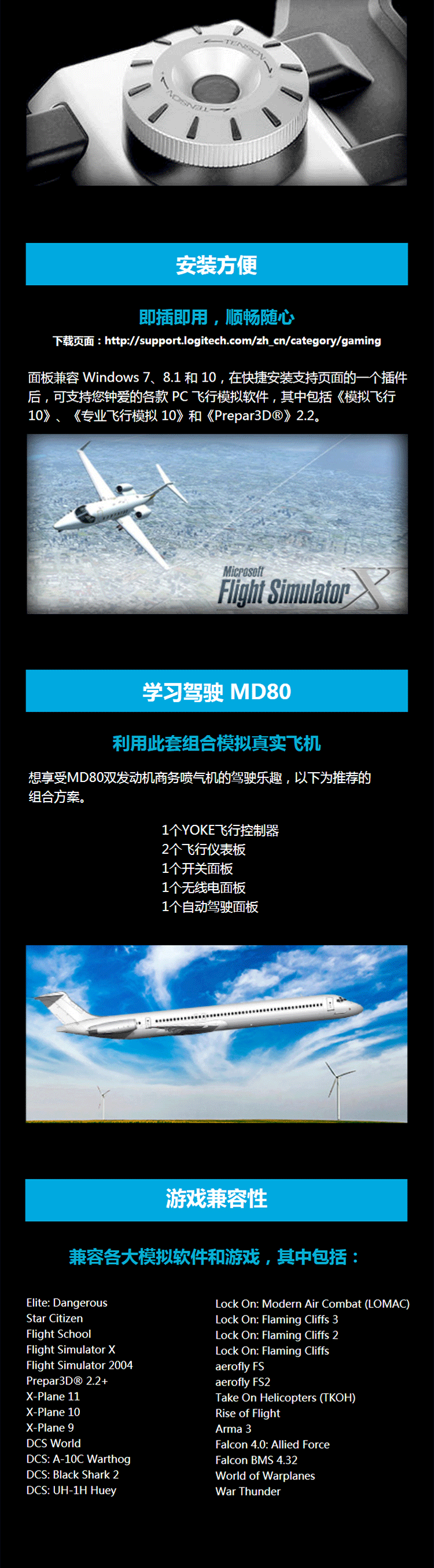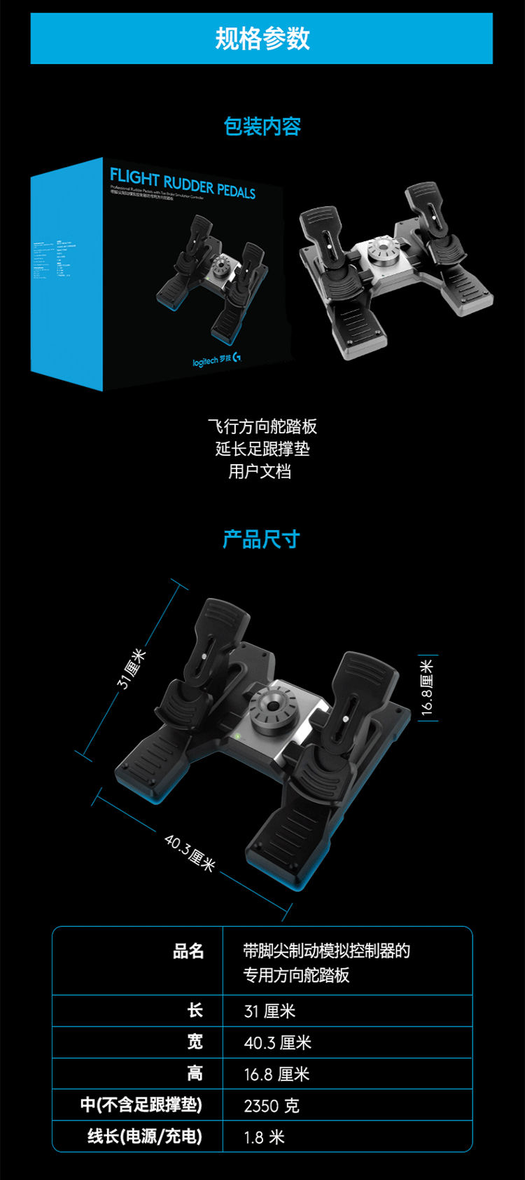 罗技 专业模拟游戏方向舵尾舵 黑色 1个