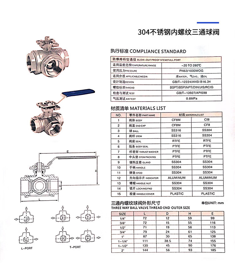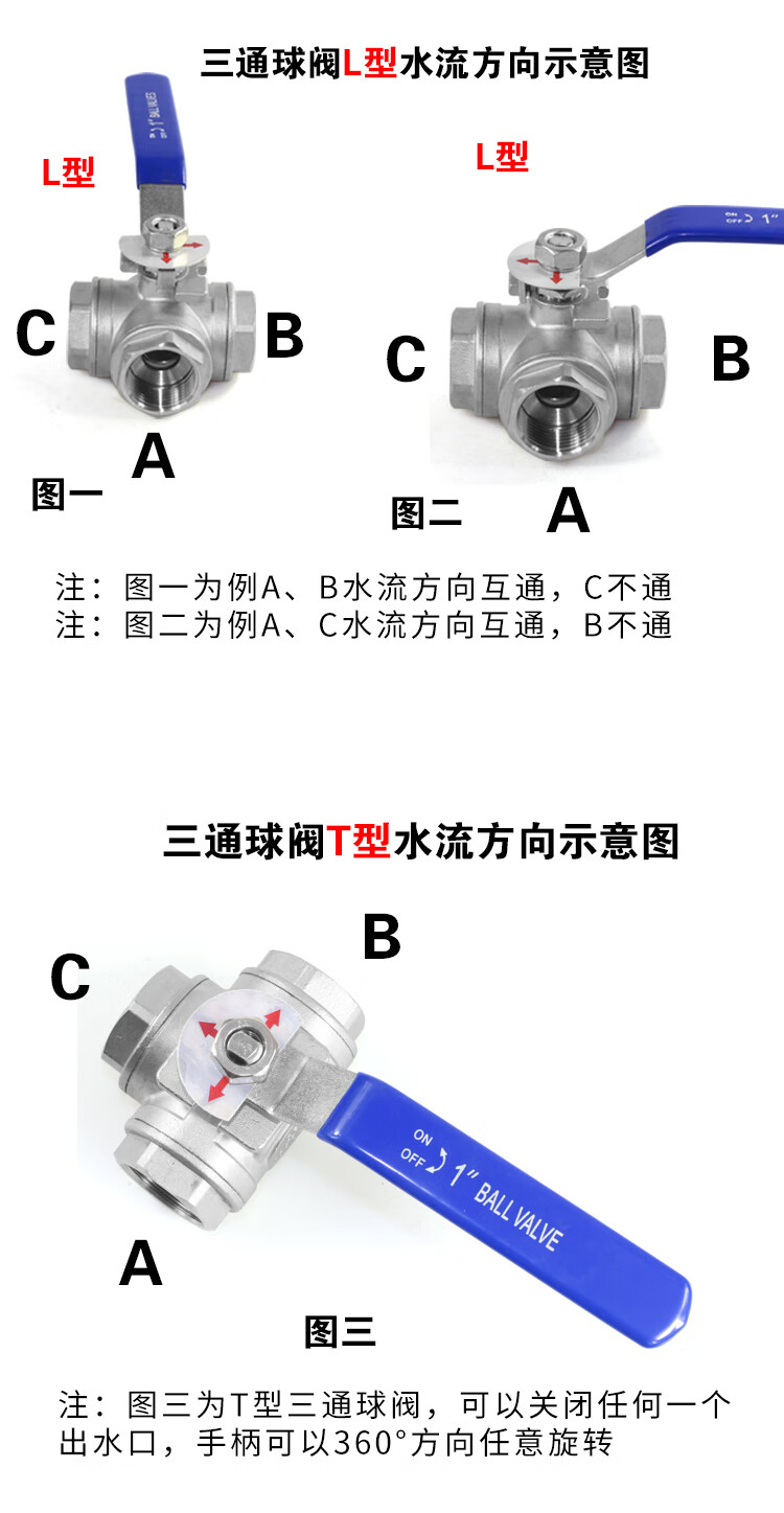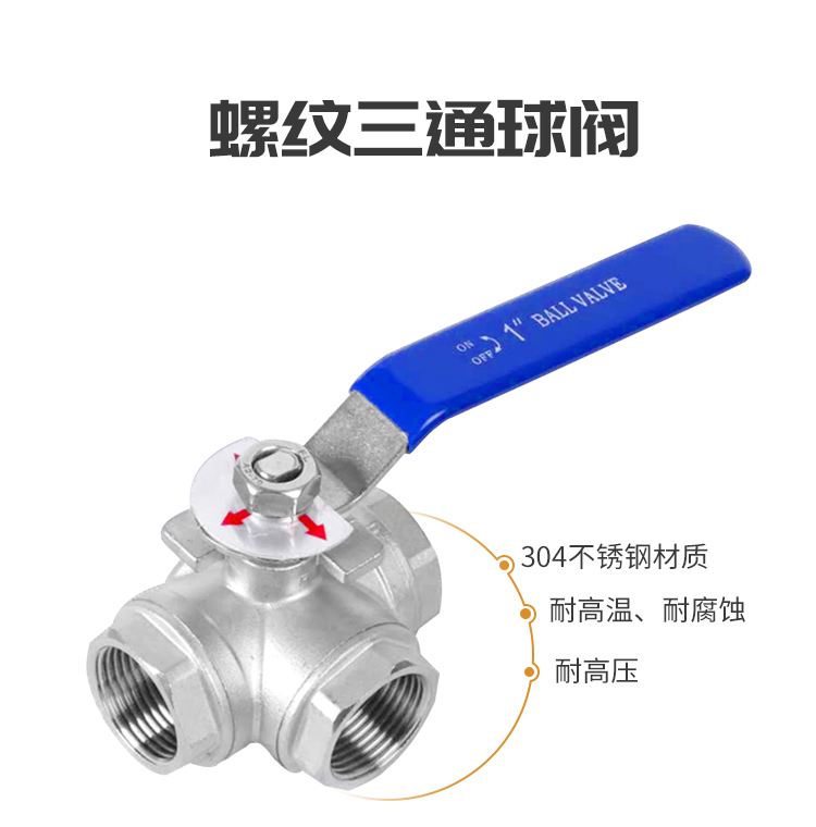 海斯迪克 304不锈钢内螺纹三通球阀 KL43-3 L型 重型DN25 1个