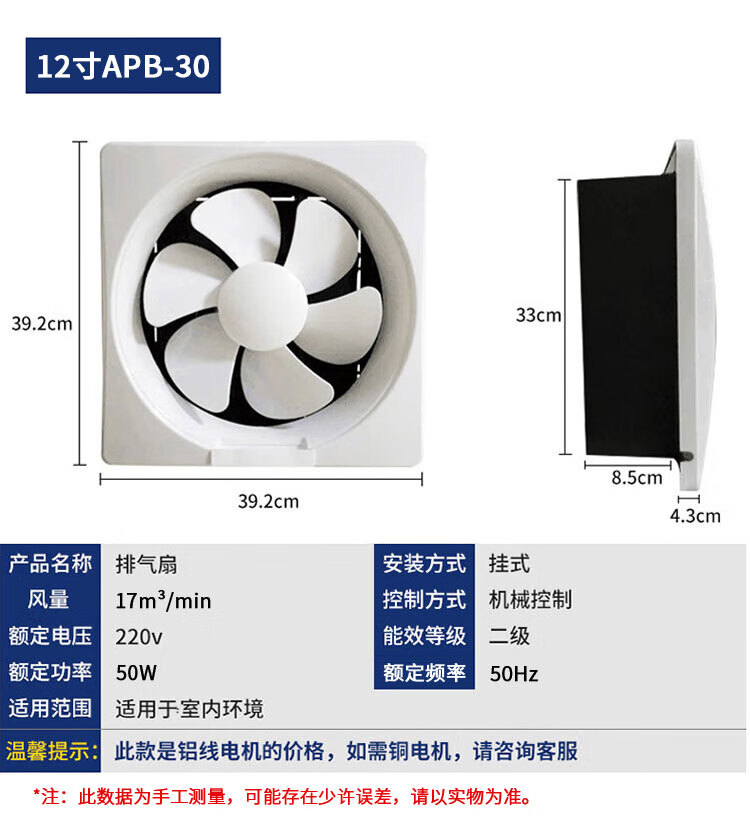 冰禹 方形弧面排气扇 KN10-3 10寸 白色 1件