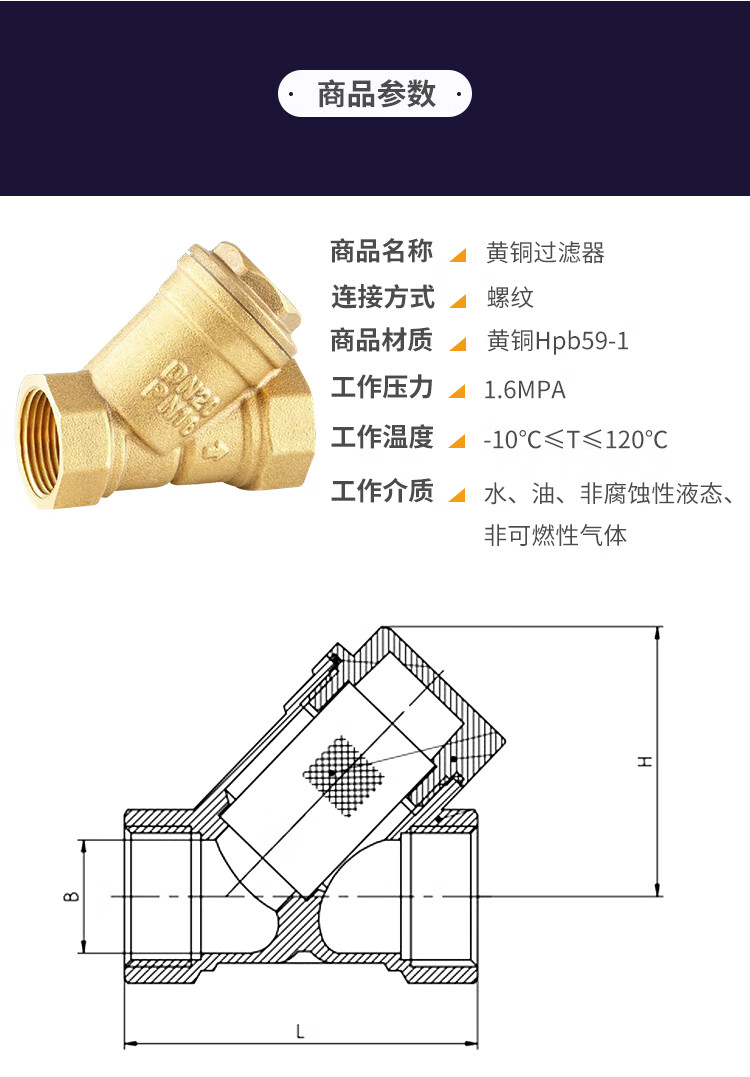• 商品名称:海斯迪克 黄铜内螺纹过滤器