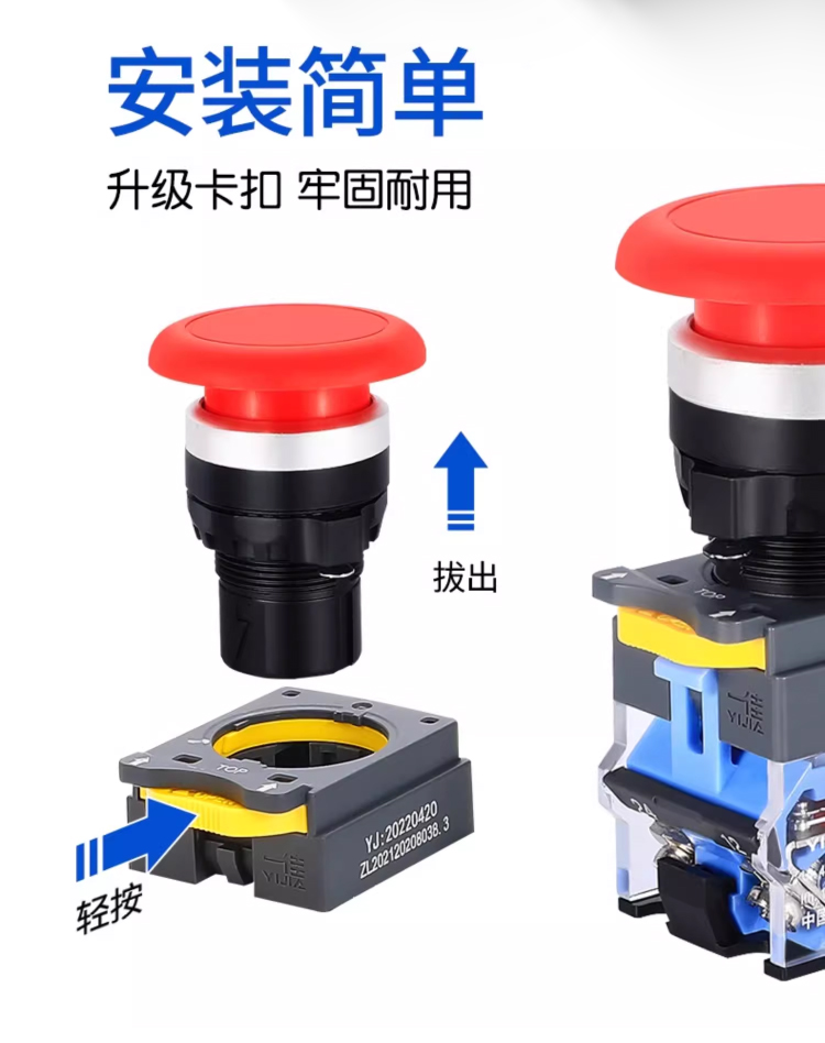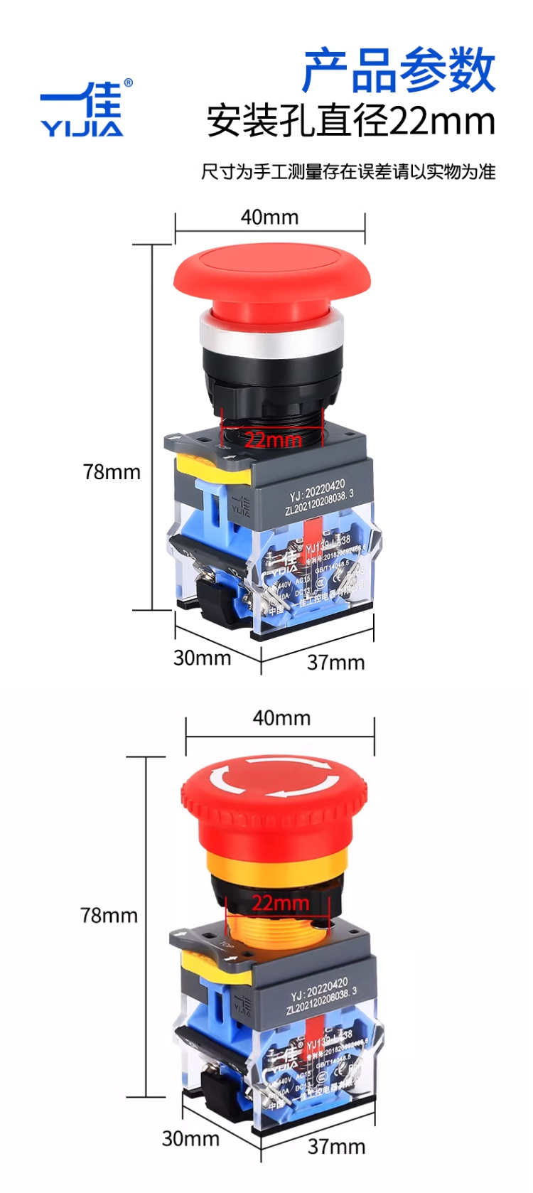 一佳 蘑菇头按钮开关 LA38-11MZS 红色 自锁 1个