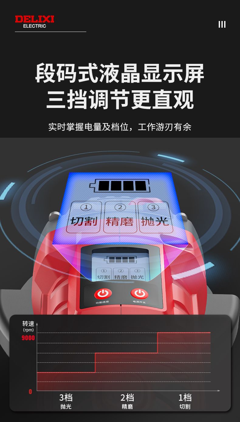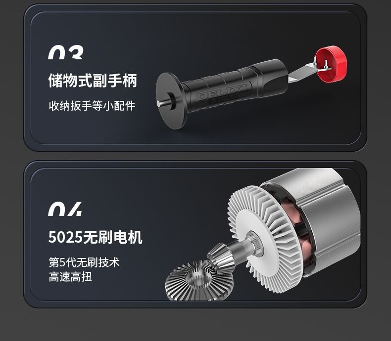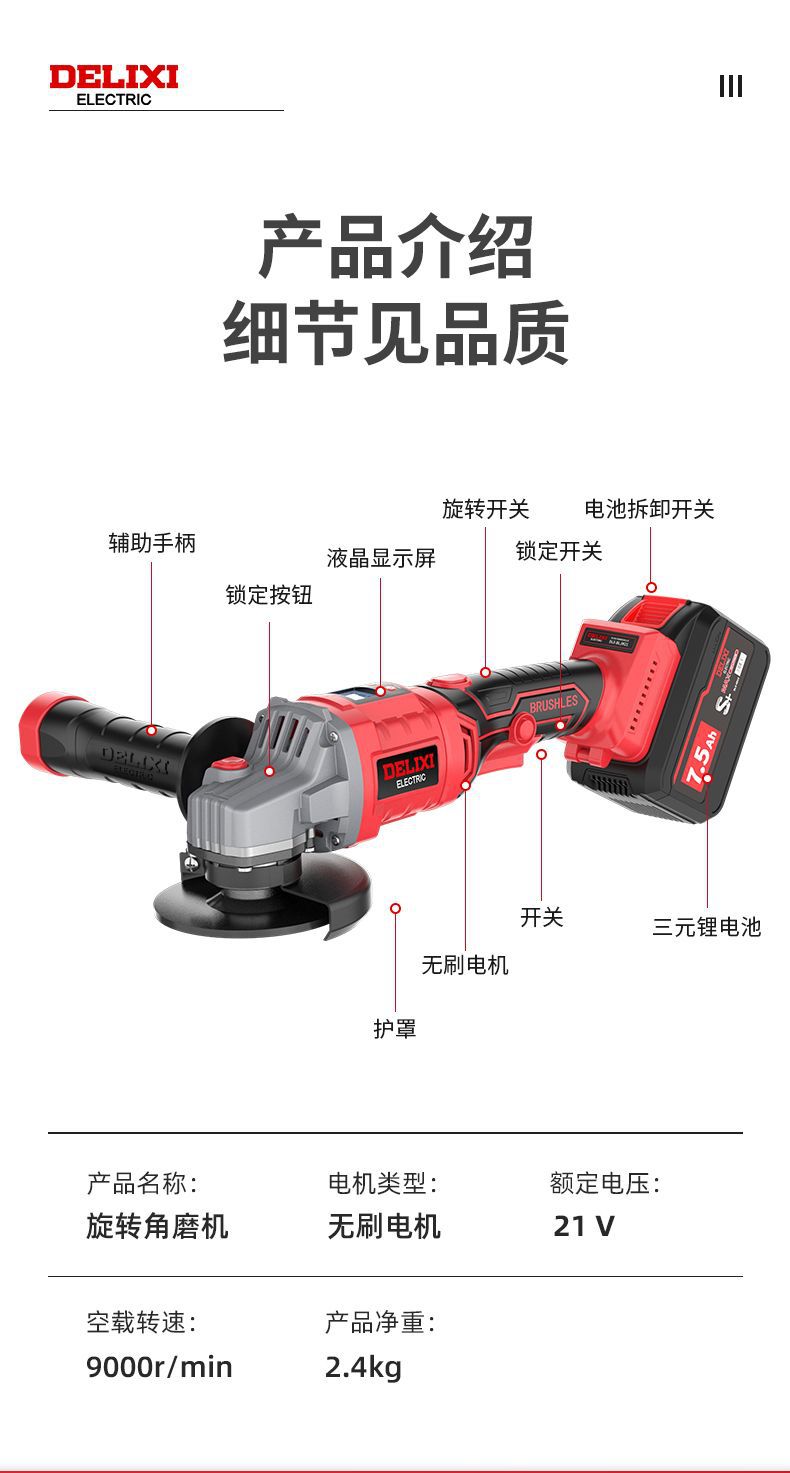 德力西电气 无刷锂电角磨机 21V 5.0Ah 9000r/min 两电一充 1台