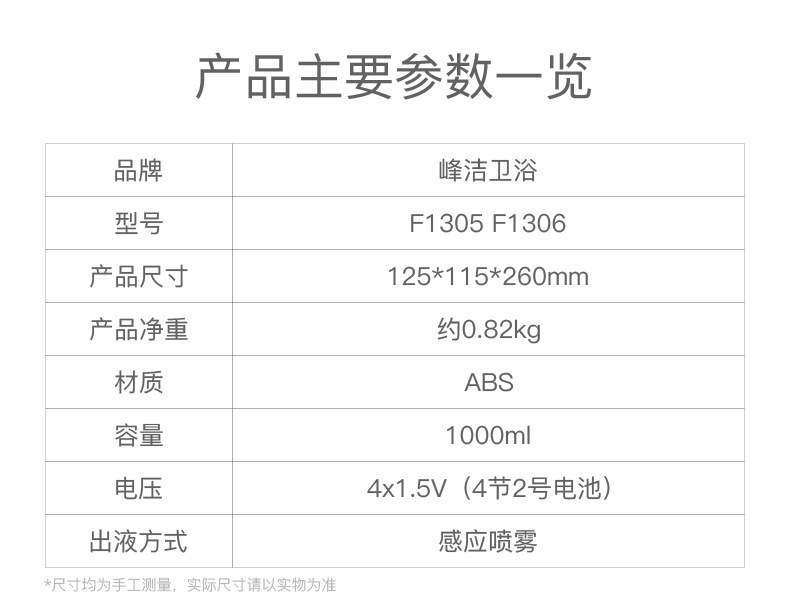 峰洁 智能感应皂液器 F-1306 1000L 喷雾款 1个