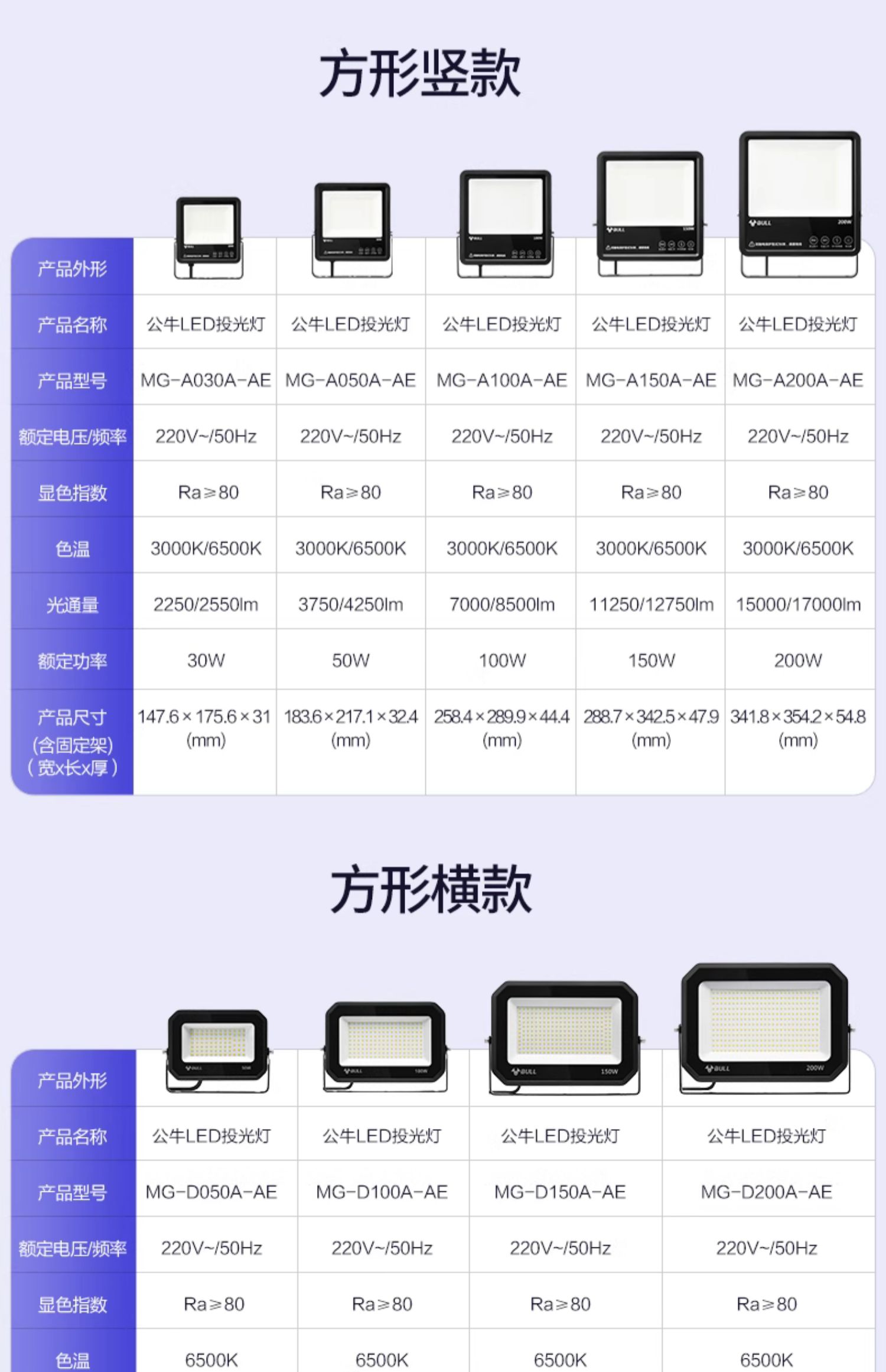 公牛 户外防水探照灯 万匠横款 100W 1个