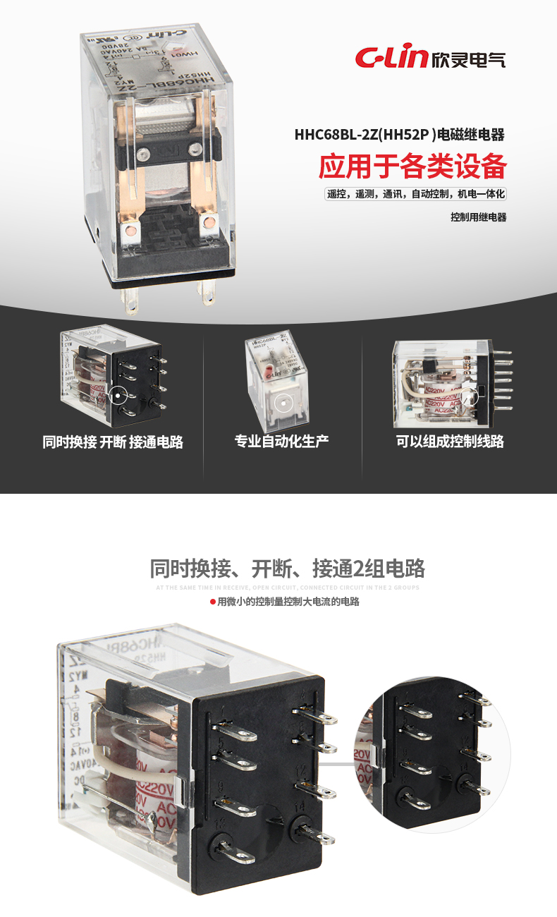 欣灵 小型电磁继电器 HHC68BL-2Z DC24V 1个