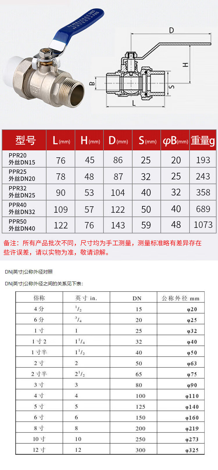 海斯迪克 PPR外丝单头活接球阀 KL32-4 PPR20×4分 1个
