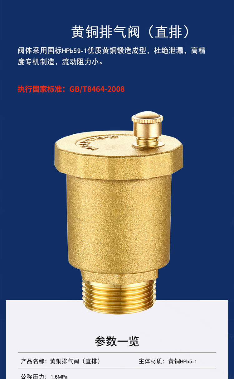 海斯迪克 黄铜外螺纹直排立式自动放气阀 KL35-2 DN20 6分 1个