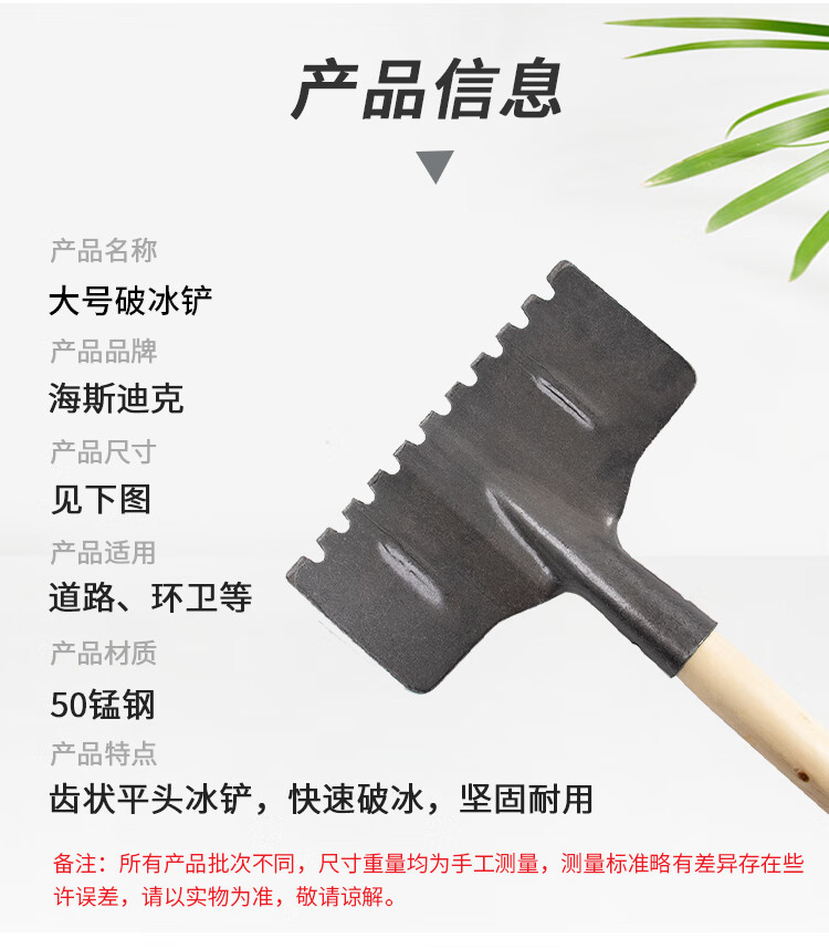 海斯迪克 大号锰钢破冰铲 KQ10-1 25.1*20.5cm 含1.2m杨木杆 1把
