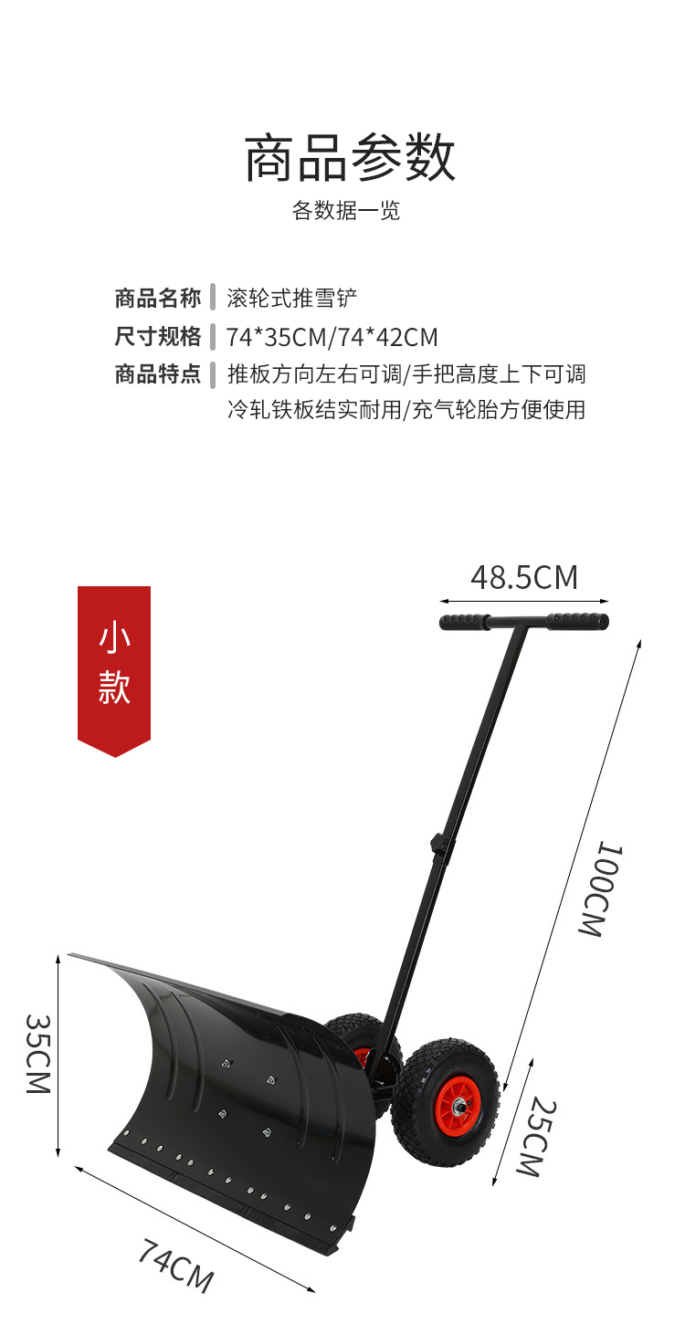 海斯迪克 大号轮式推雪车 KQ12-1 74*42cm 单杆 1个