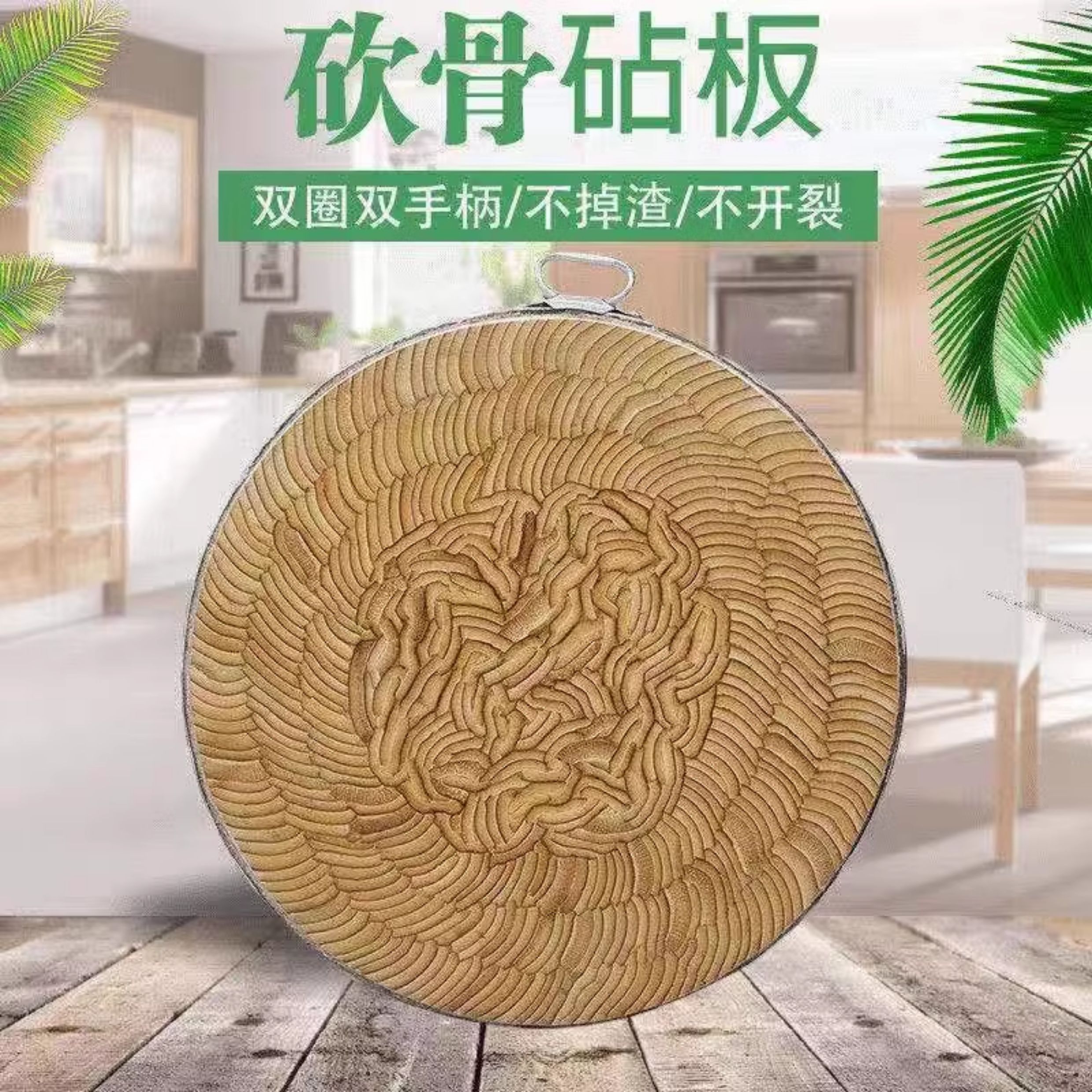 国产通用 圆形整竹菜板 直径45厚10CM双钢圈 1个
