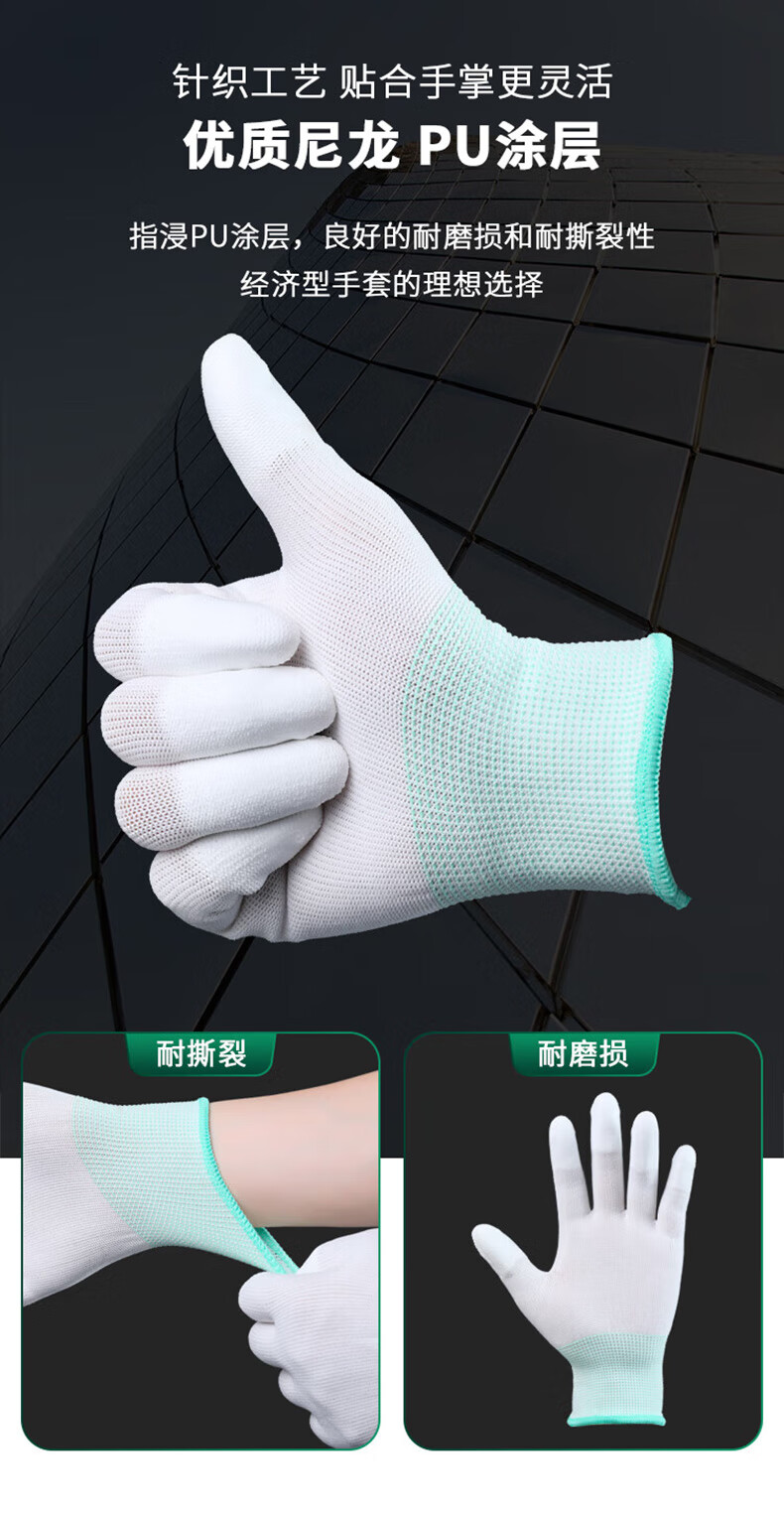 海斯迪克 涂指手套 KG15-5 PU 绿色M 10双 1包