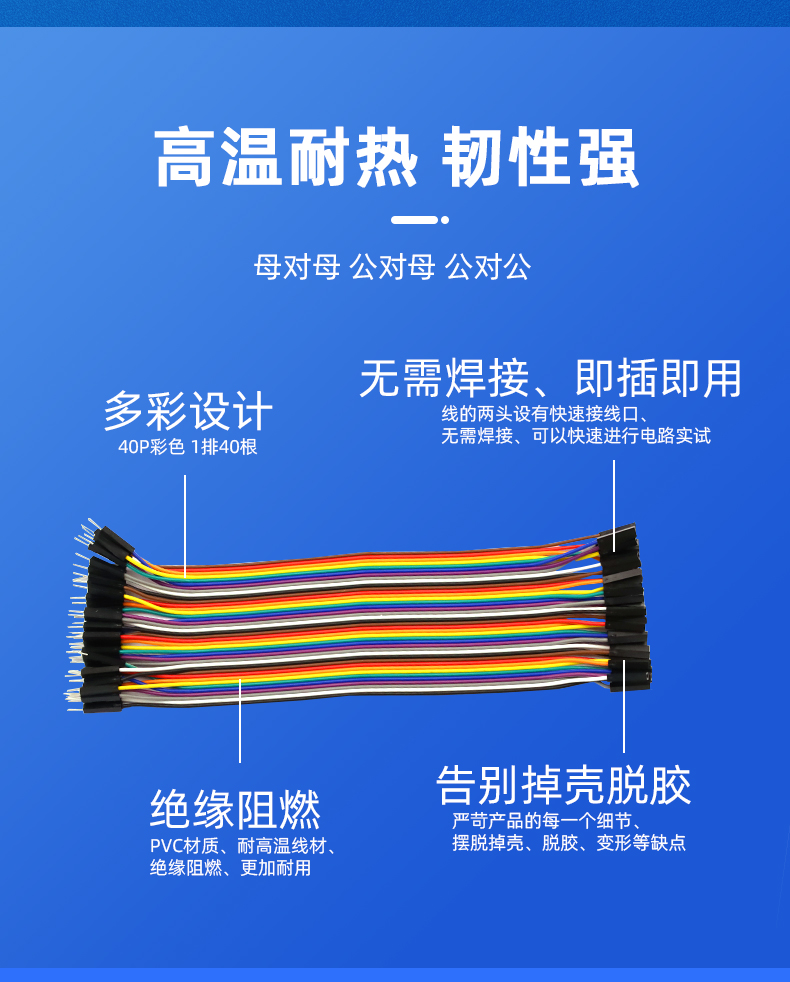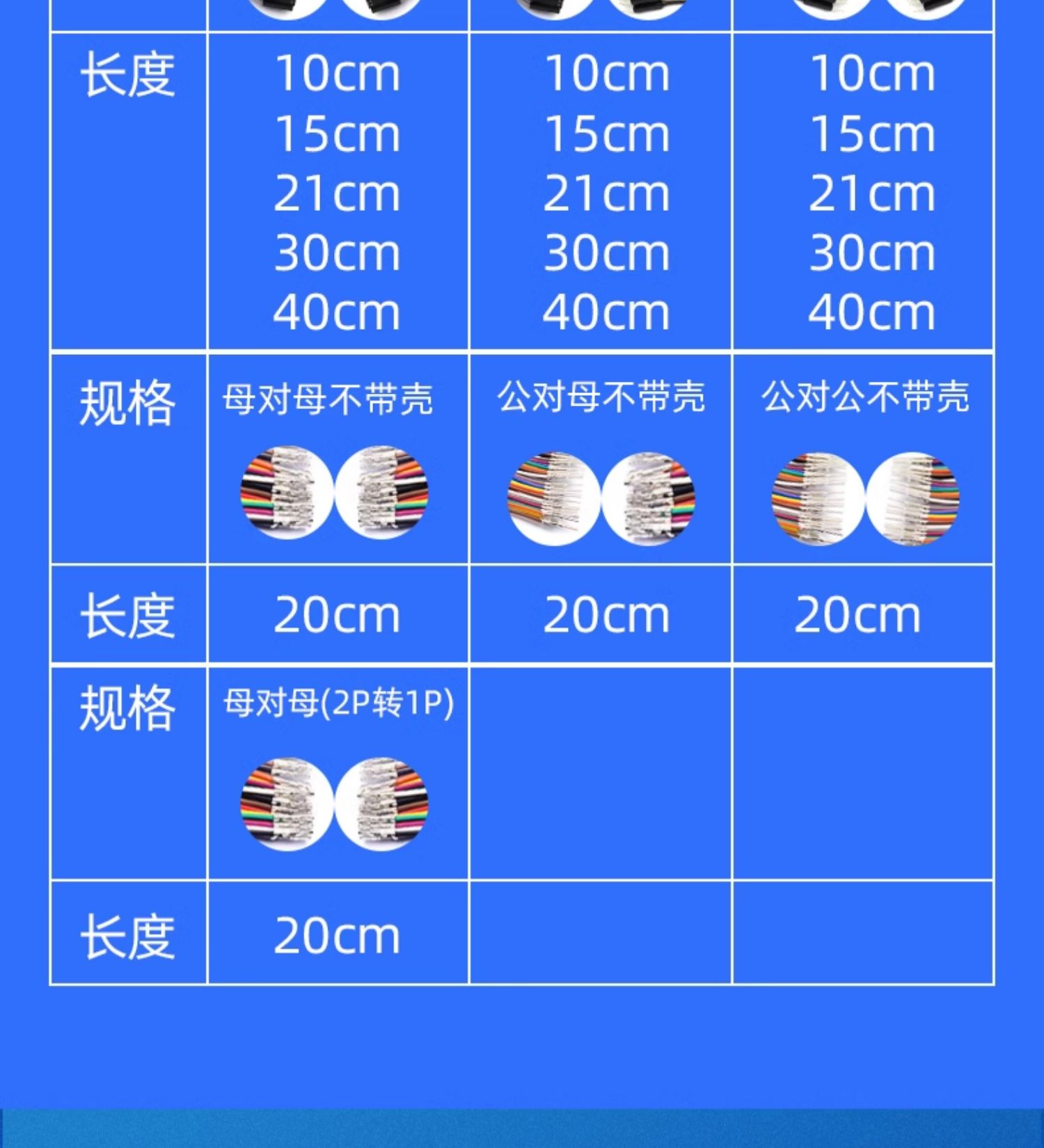 TELESKY 彩色杜邦线 母对母+公对母+公对公 21cm 120根 1件