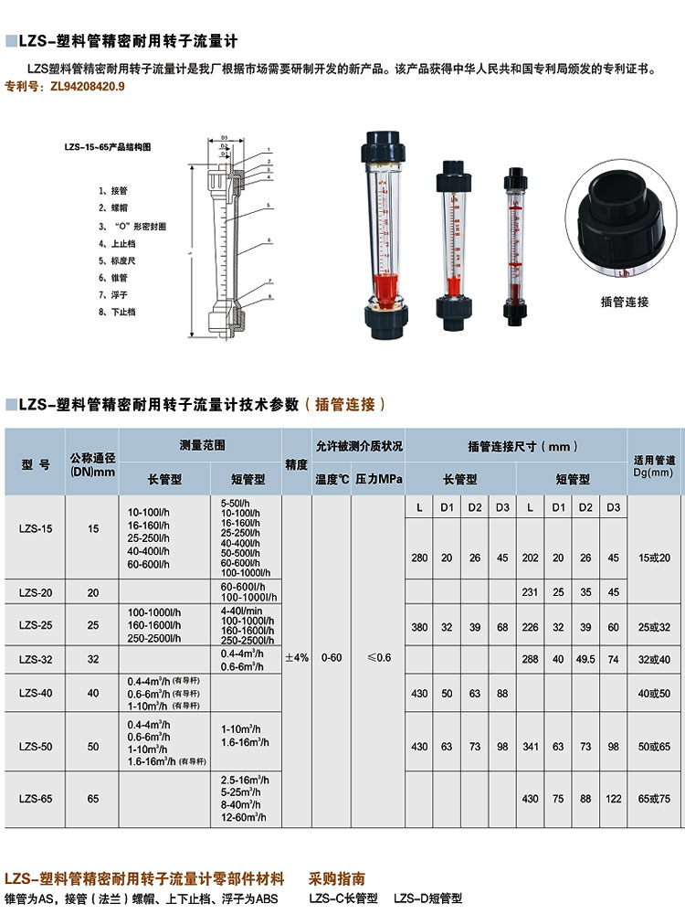 国产通用 塑料管浮子流量计 LZS-32D 0.6-6m3/H 1个