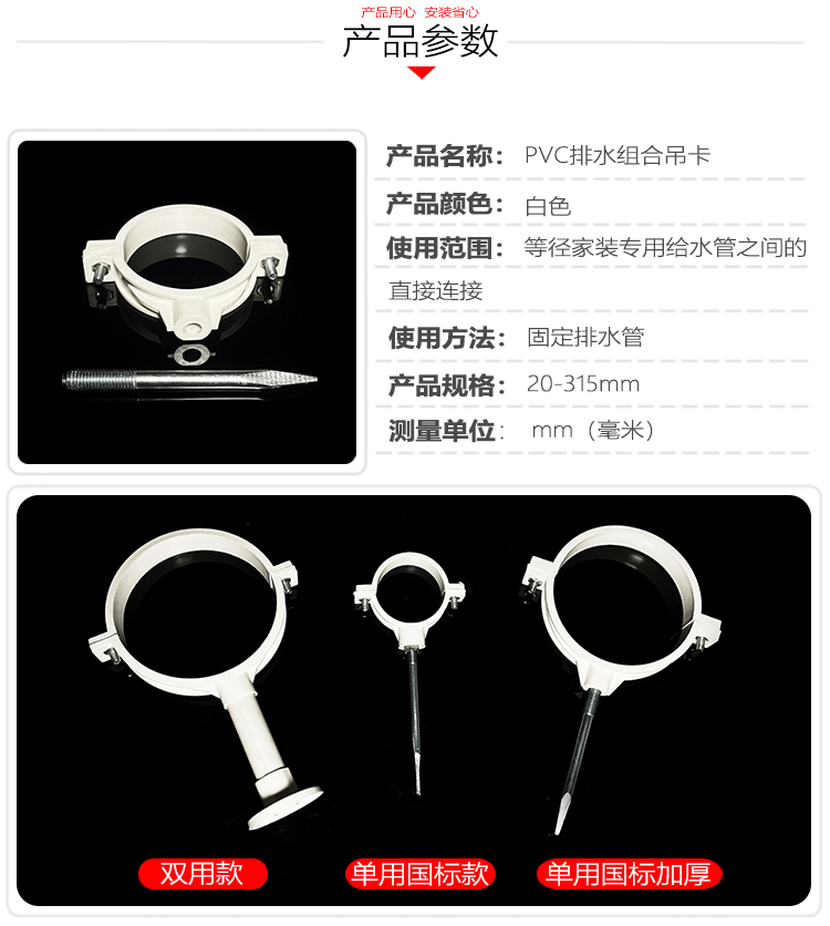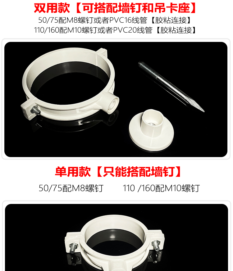 国产通用 PVC排水管卡 160mm单用管(带m10x10钉) 1个