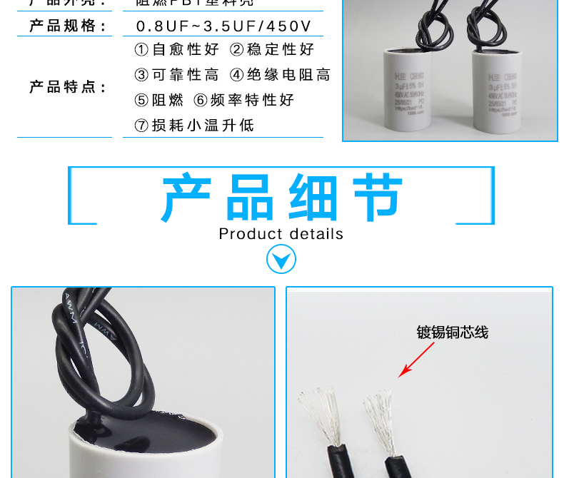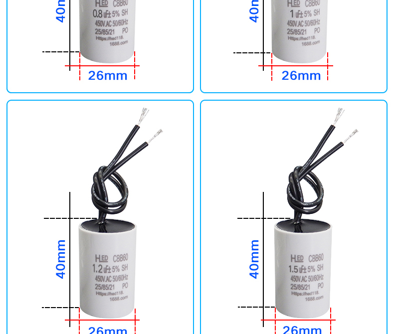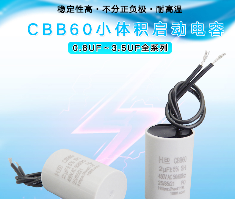 国产通用 电容 CBB60 2μF 450-500VAC 1个