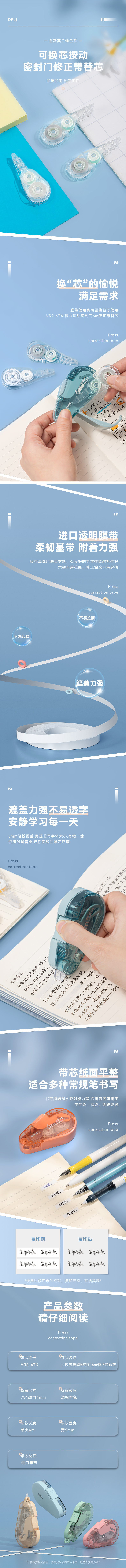 得力 按动密封门修正带替芯 VR2-6TX 透明本色 5mm*6m 1个