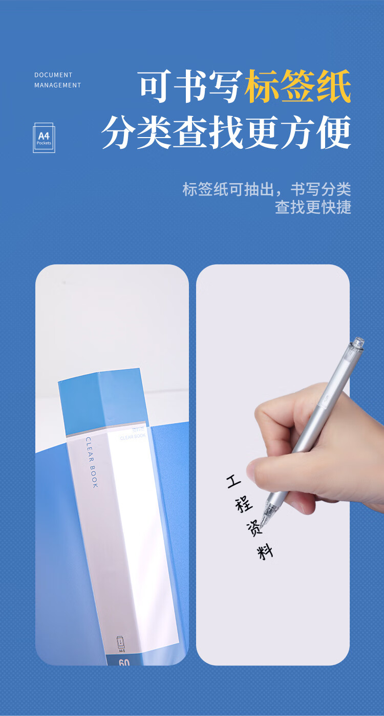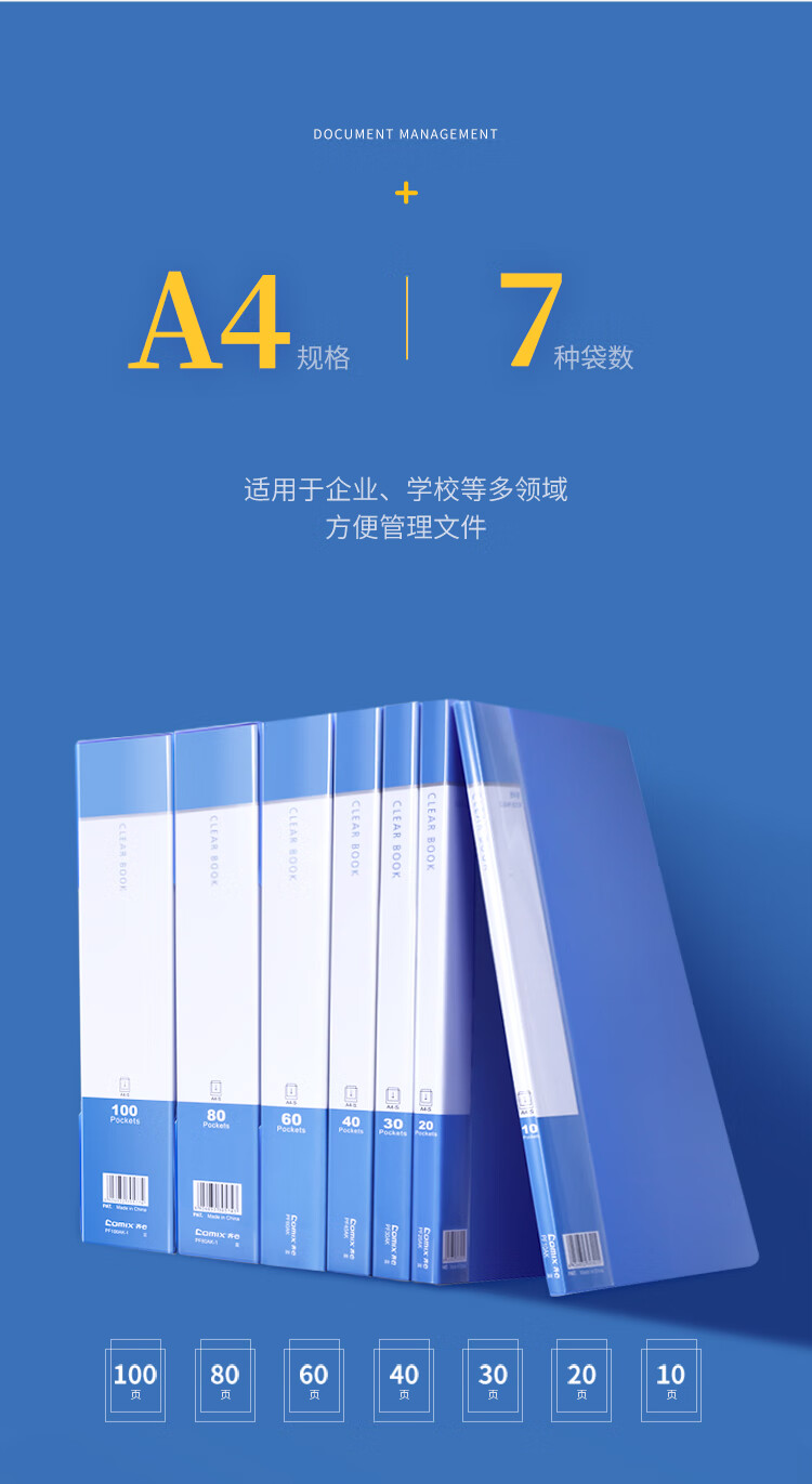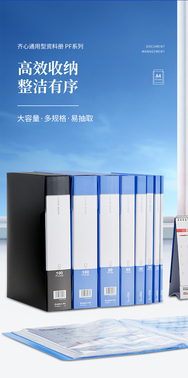 齐心(COMIX) A4资料册 PF60AK 黑色 60页 1个