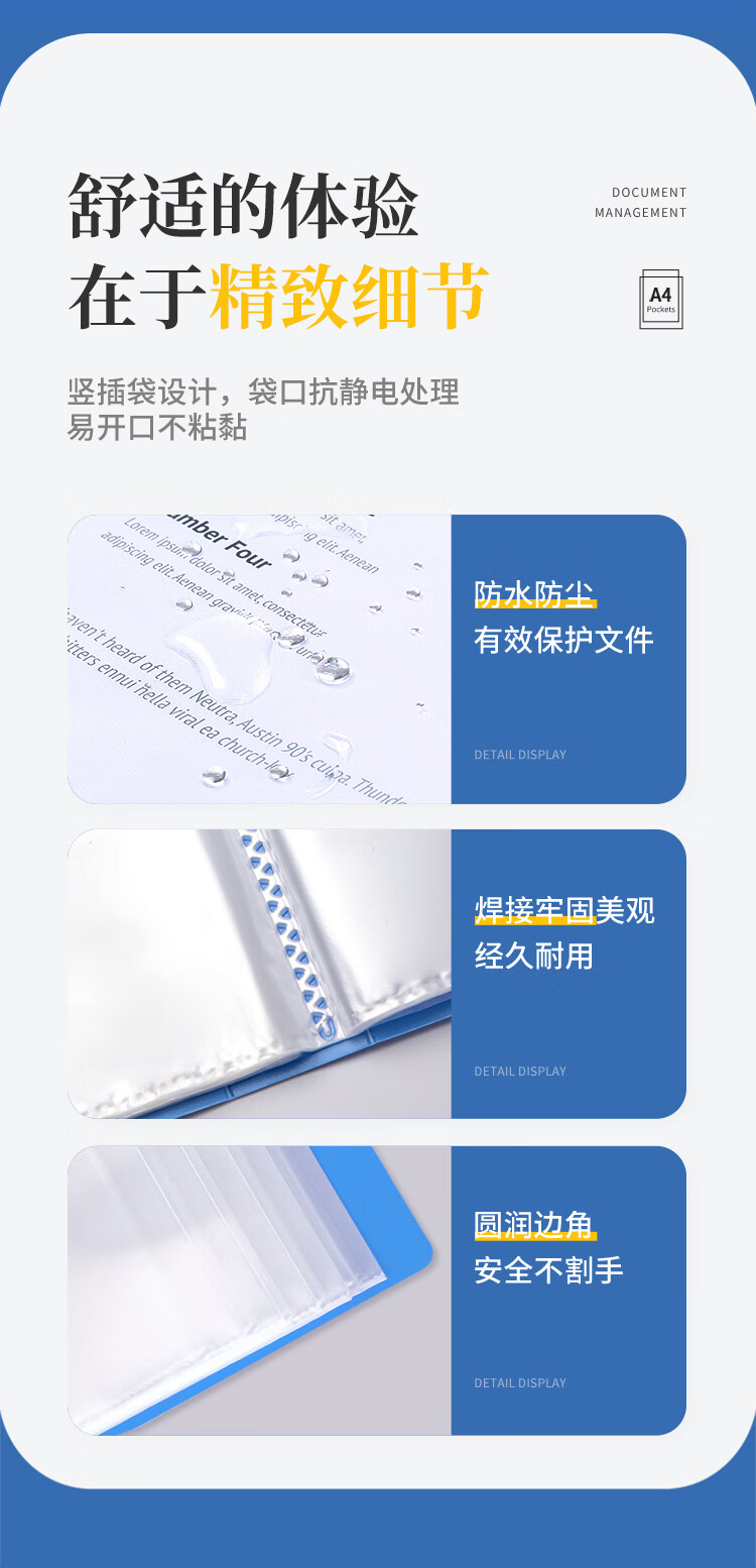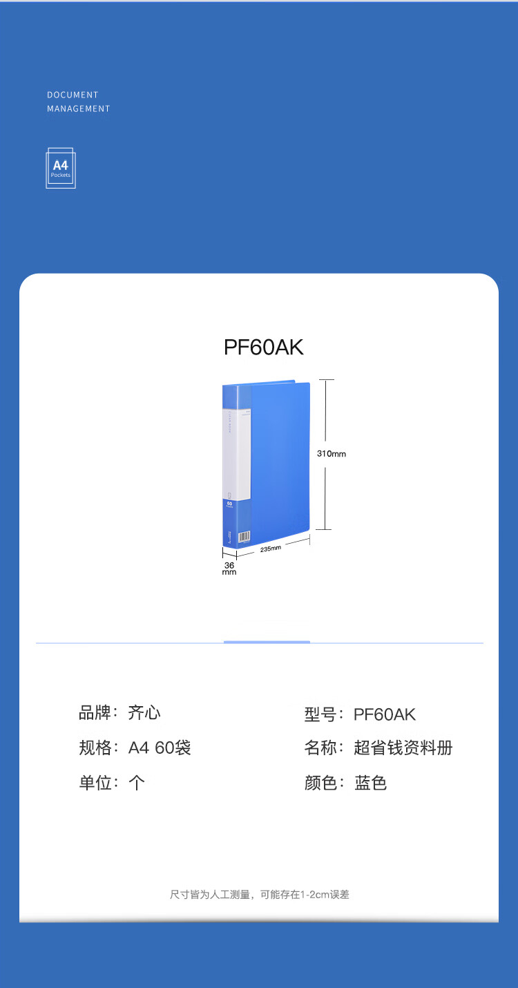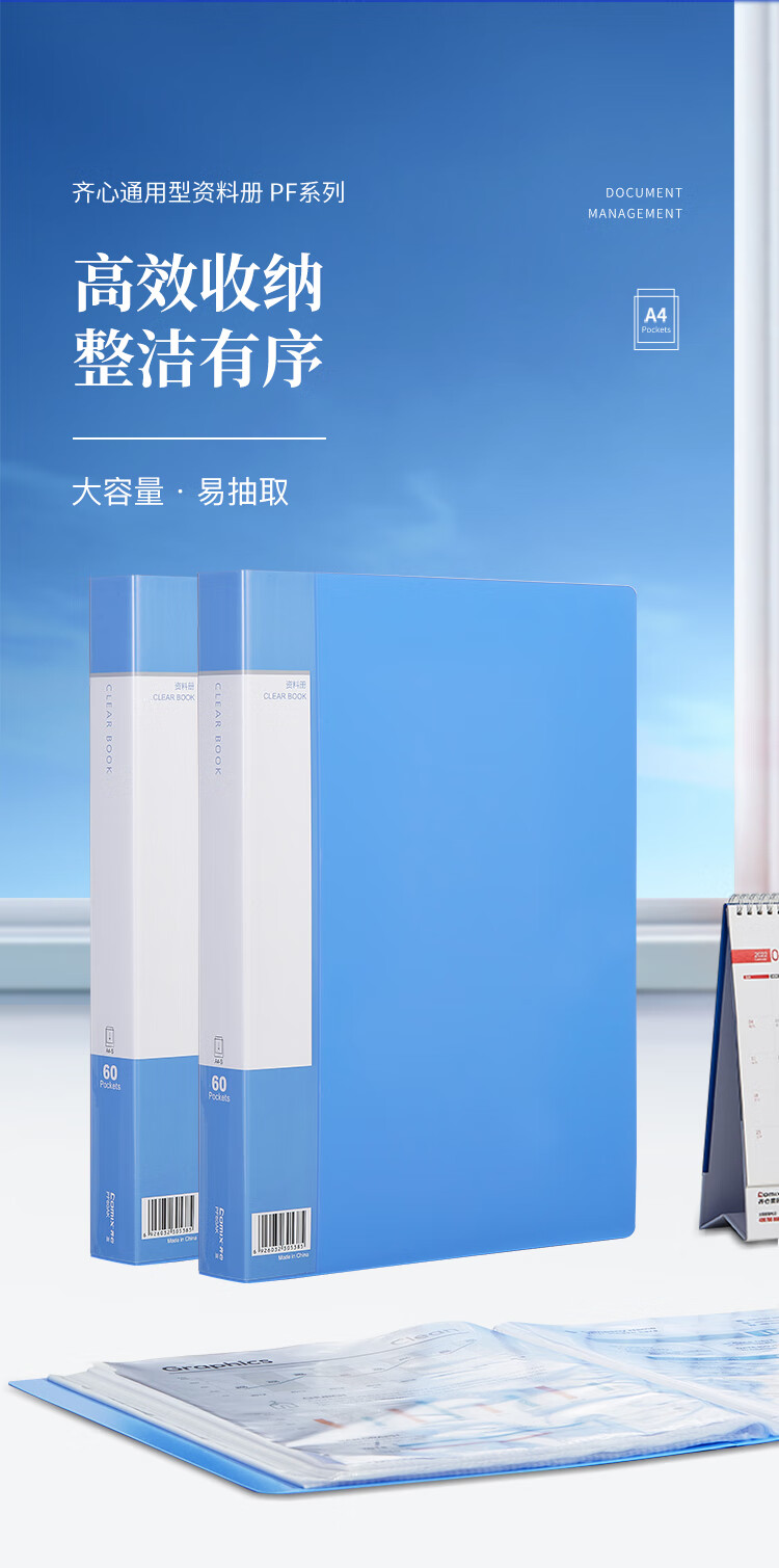 齐心(COMIX) A4资料册 PF60AK 蓝色 60页 1个