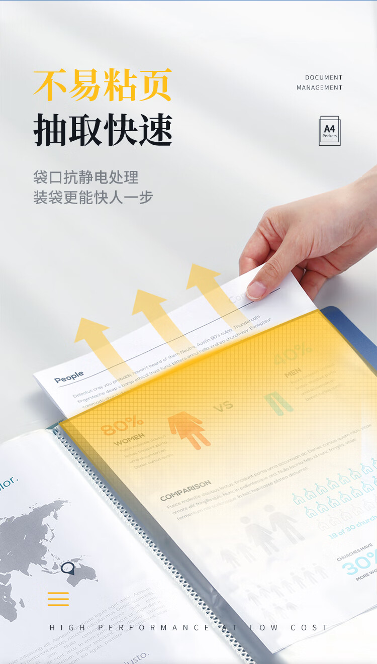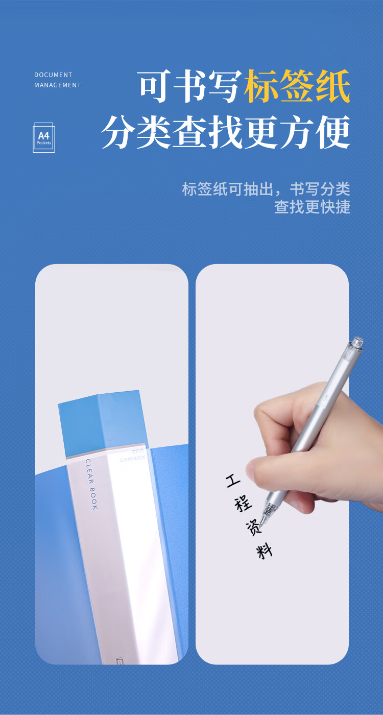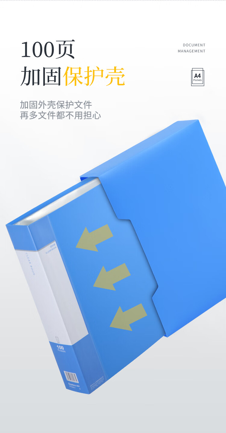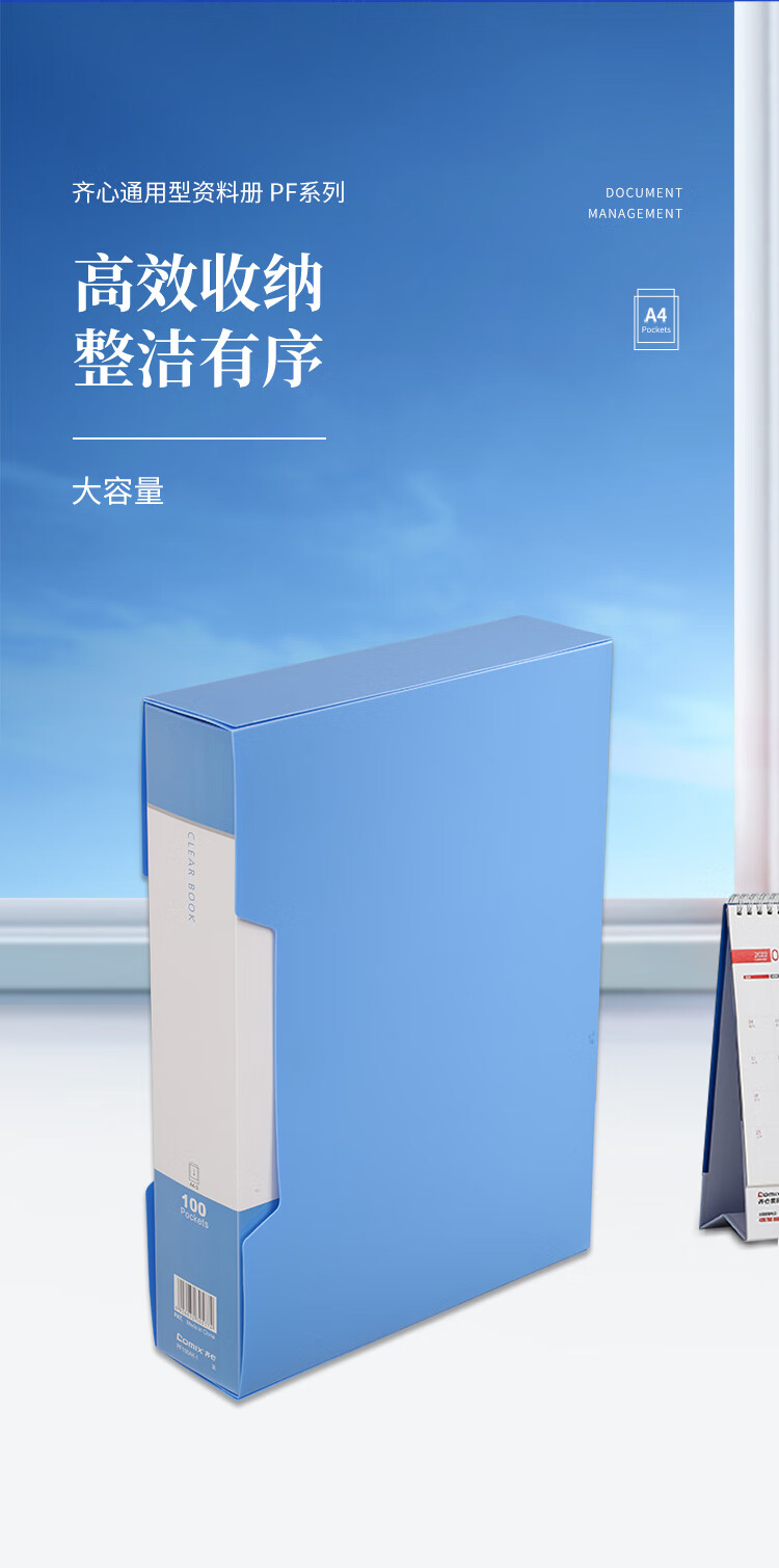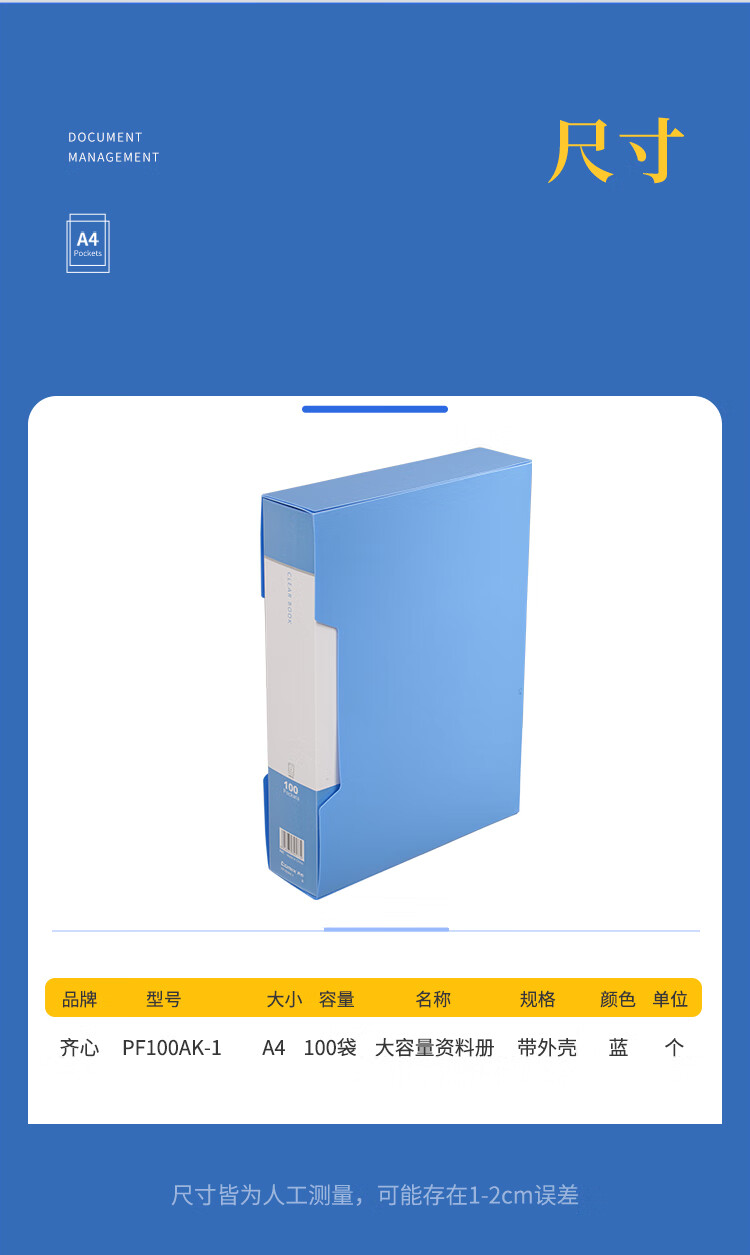 齐心(COMIX) A4资料册 PF100AK-1 蓝色 100页 1个