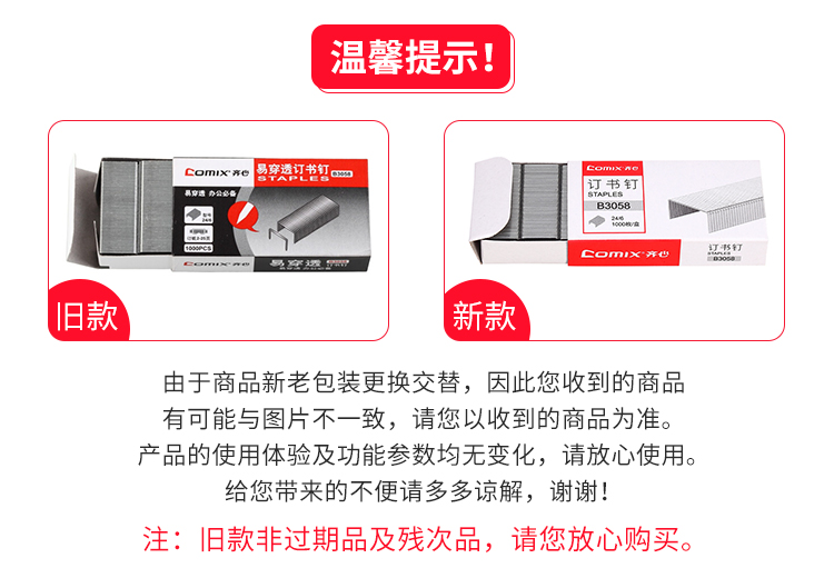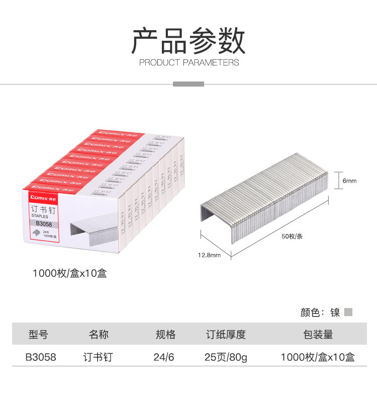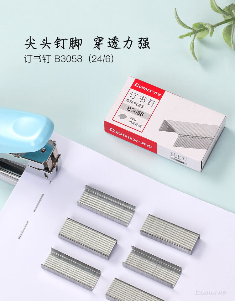 齐心(COMIX) 易穿透订书钉 B3058 24/6 1盒