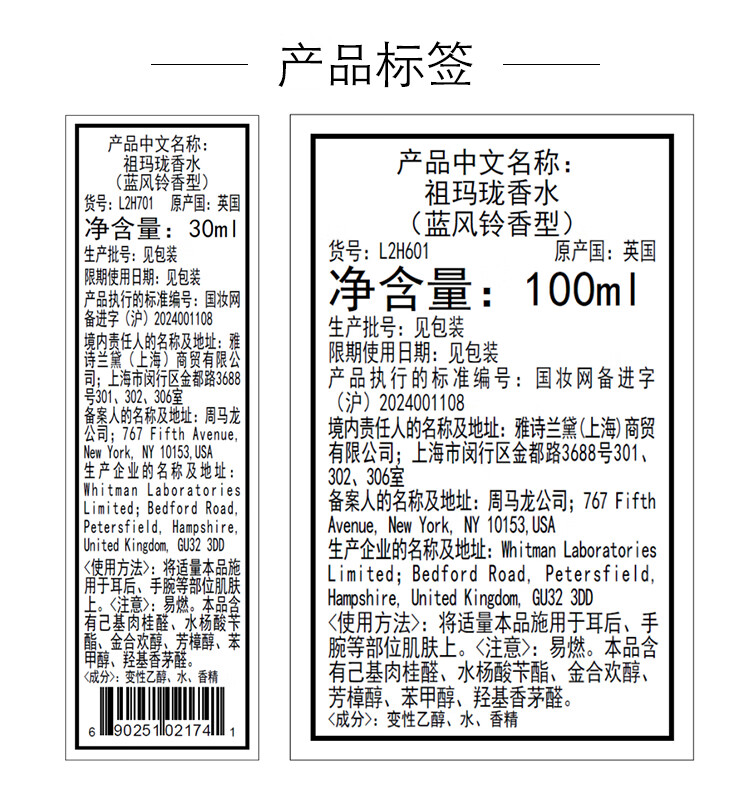 祖玛珑 香水 蓝风铃 30ml 礼盒+礼品袋 1件