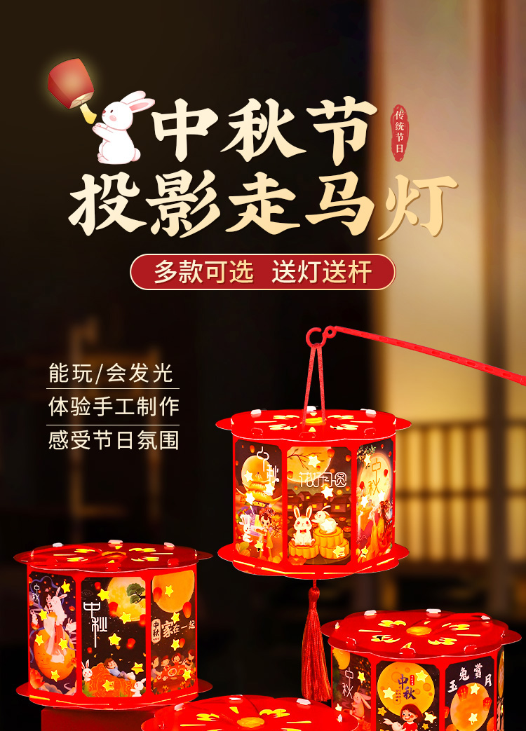 走马灯【欢度中秋】高亮投影 送灯+提杆+流苏