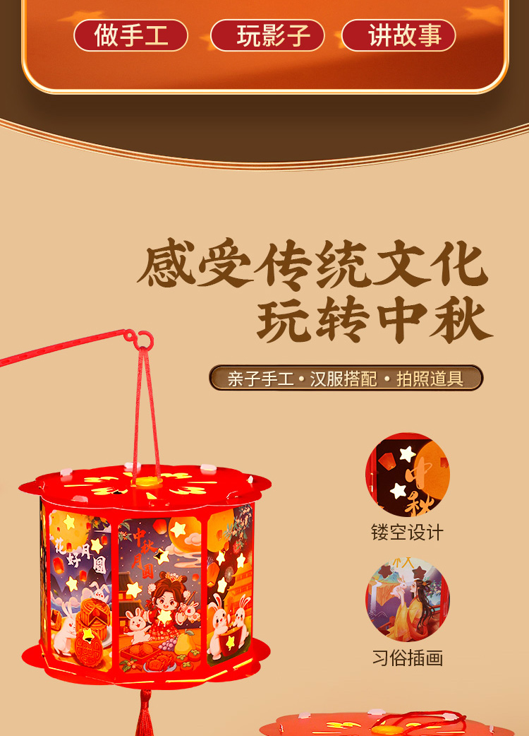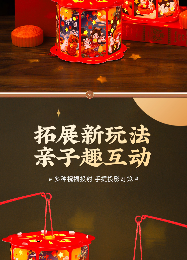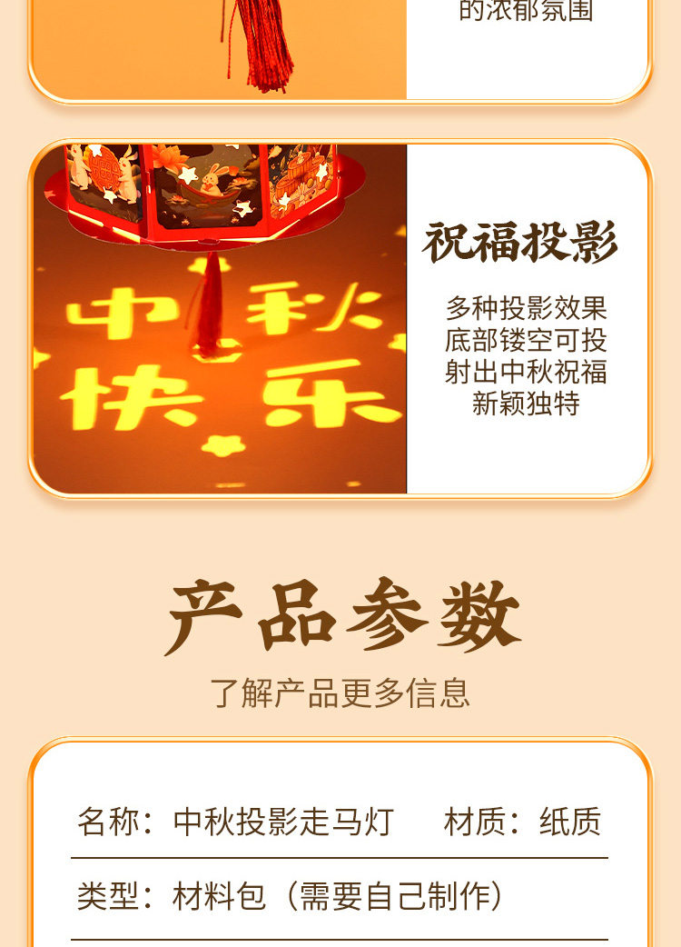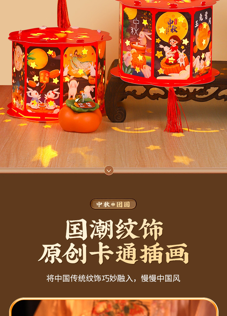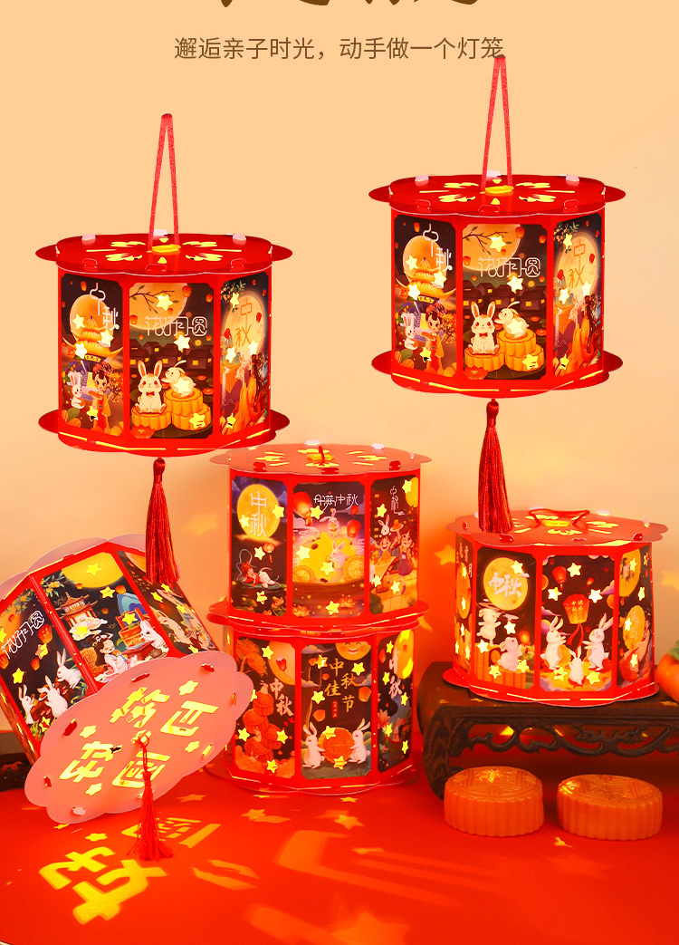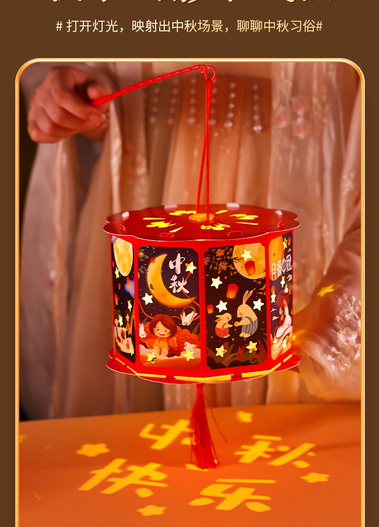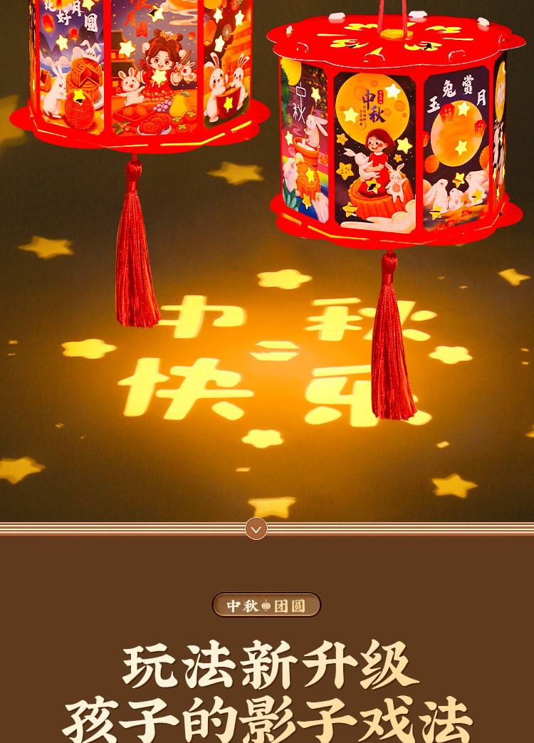 走马灯【中秋团圆】高亮投影 送灯+提杆+流苏