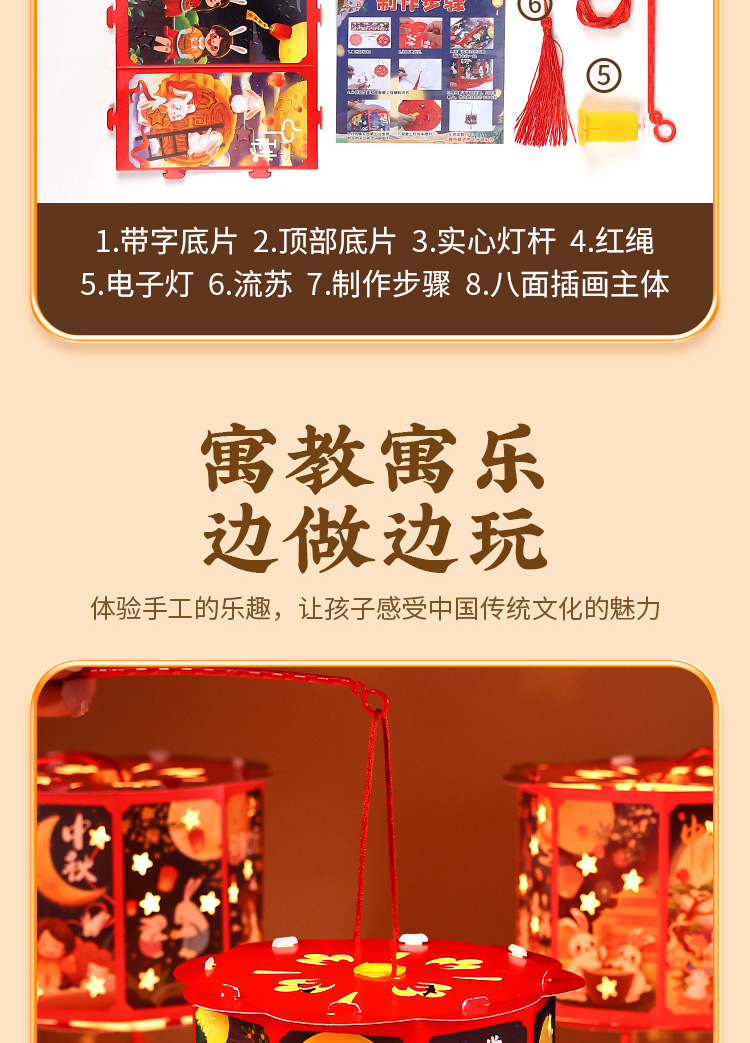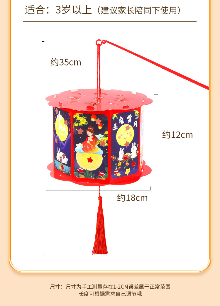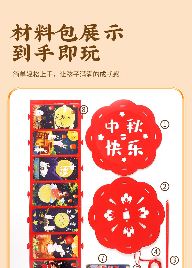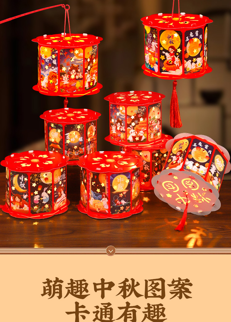 国产通用 中秋节灯笼手工diy材料包 花纹兔 随机发 1个