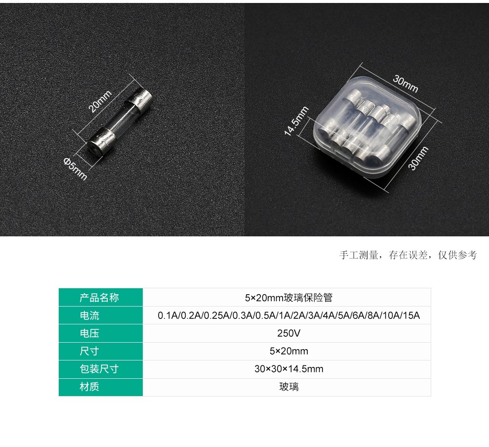 伊莱科 熔断器玻璃管保险丝 5*20mm 0.1A 1个