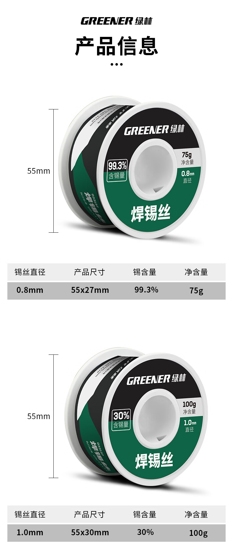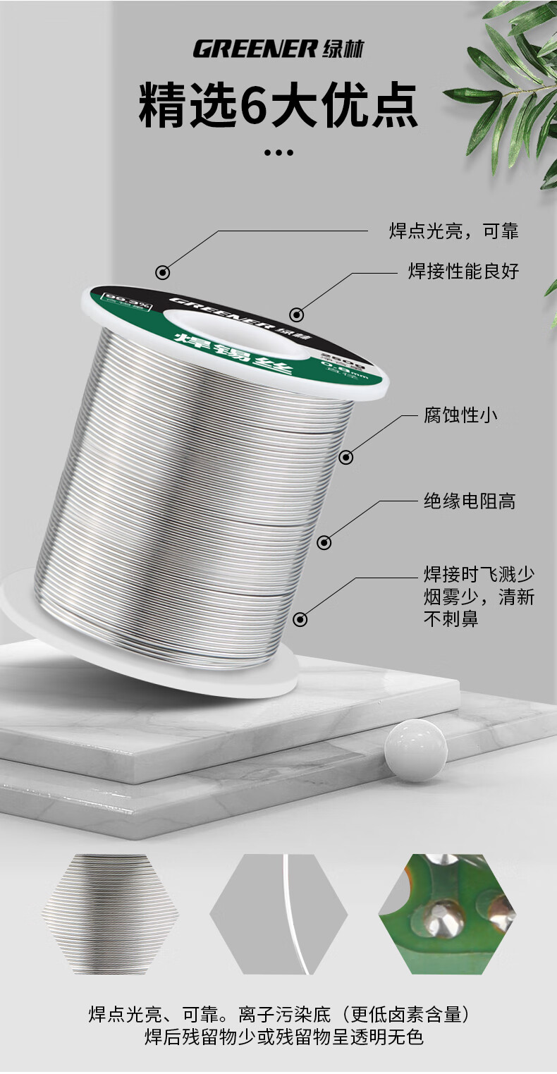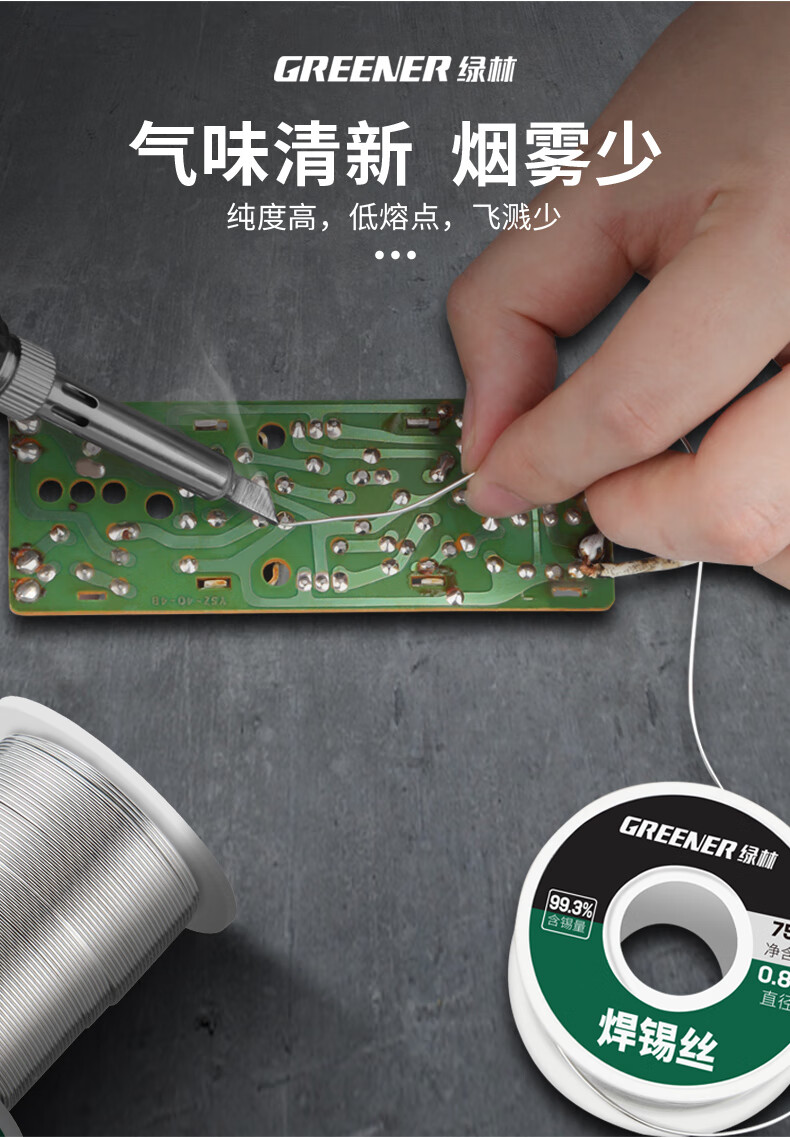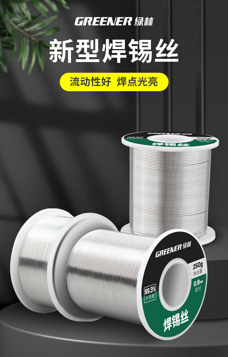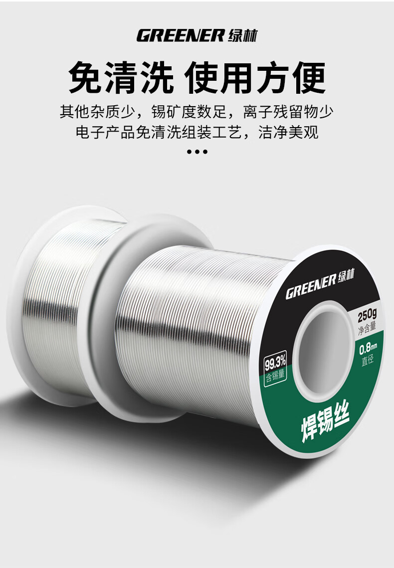 绿林 无铅焊锡丝 0.8MM环保免清洗99.3%高纯度 250g 1卷