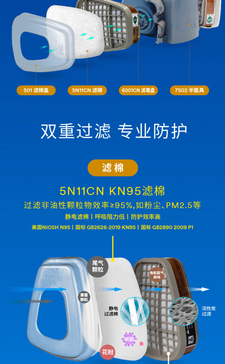 3M 防护面罩 7502 硅胶半面型 1个