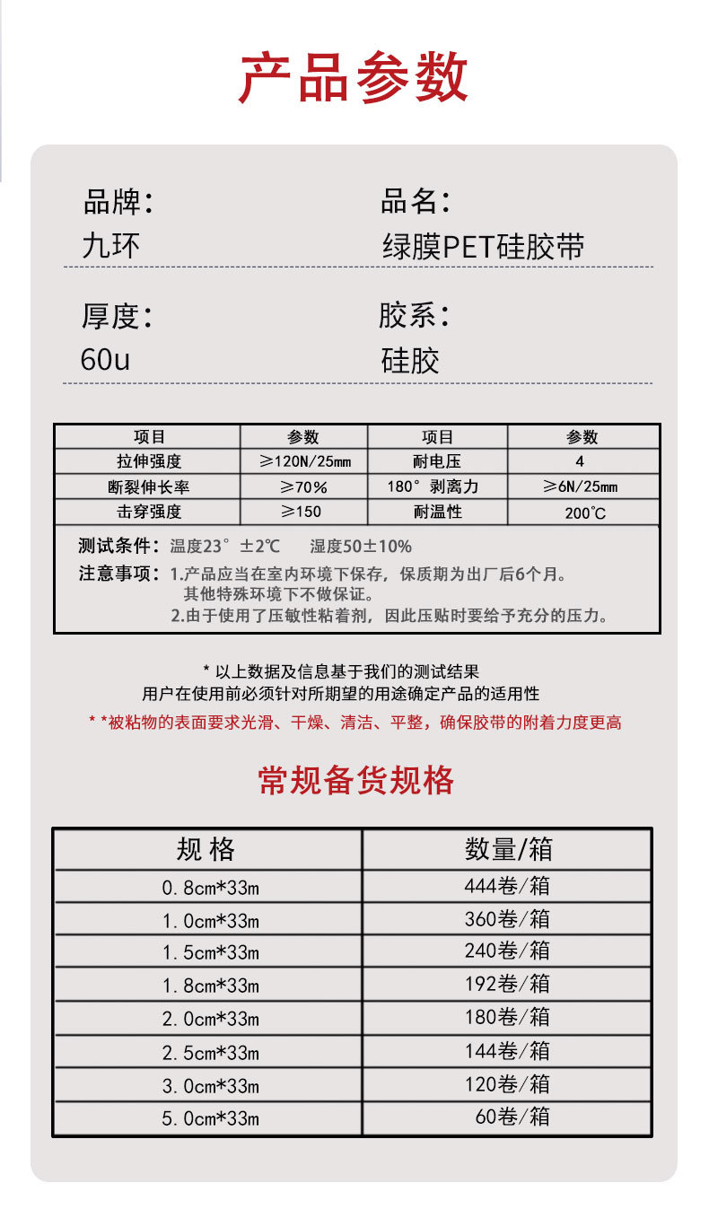 国产通用 PET耐高温胶带 48mm 绿色 100米 1卷