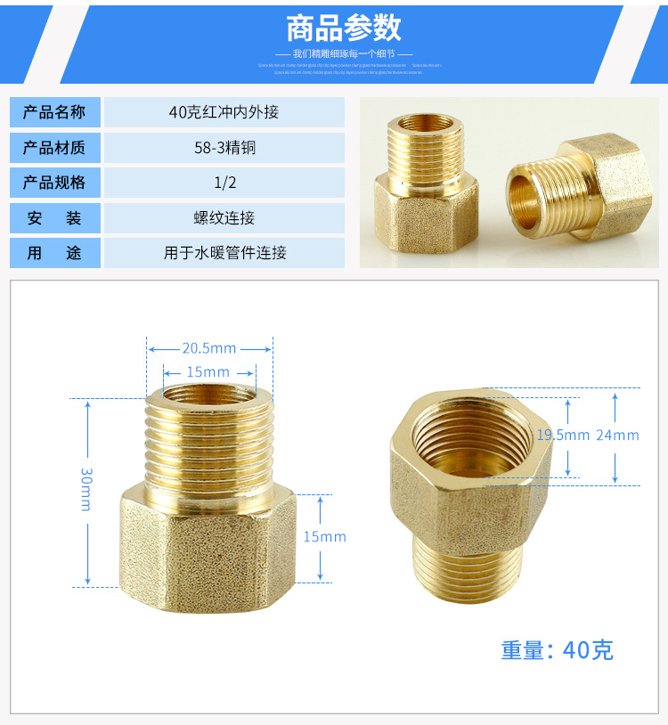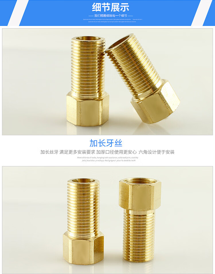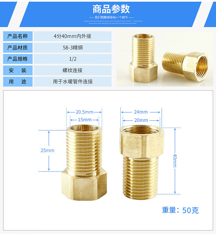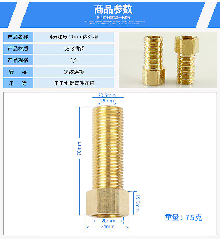 海斯迪克 铜内外丝加长直接 KL71-4 1/2″70mm 1个