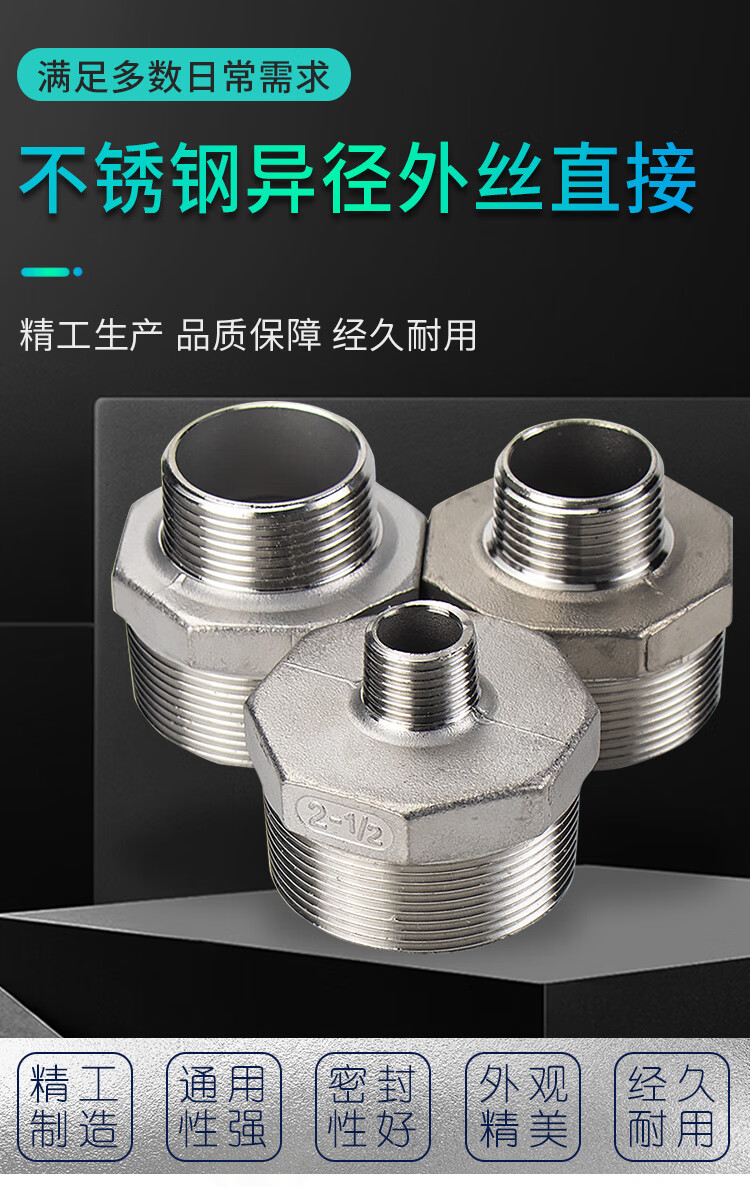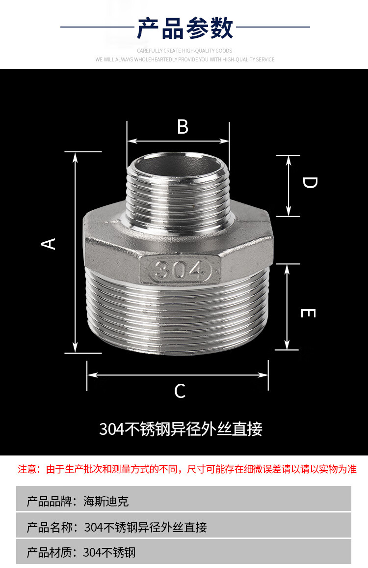 • 商品名称:海斯迪克 304不锈钢异径外丝直接