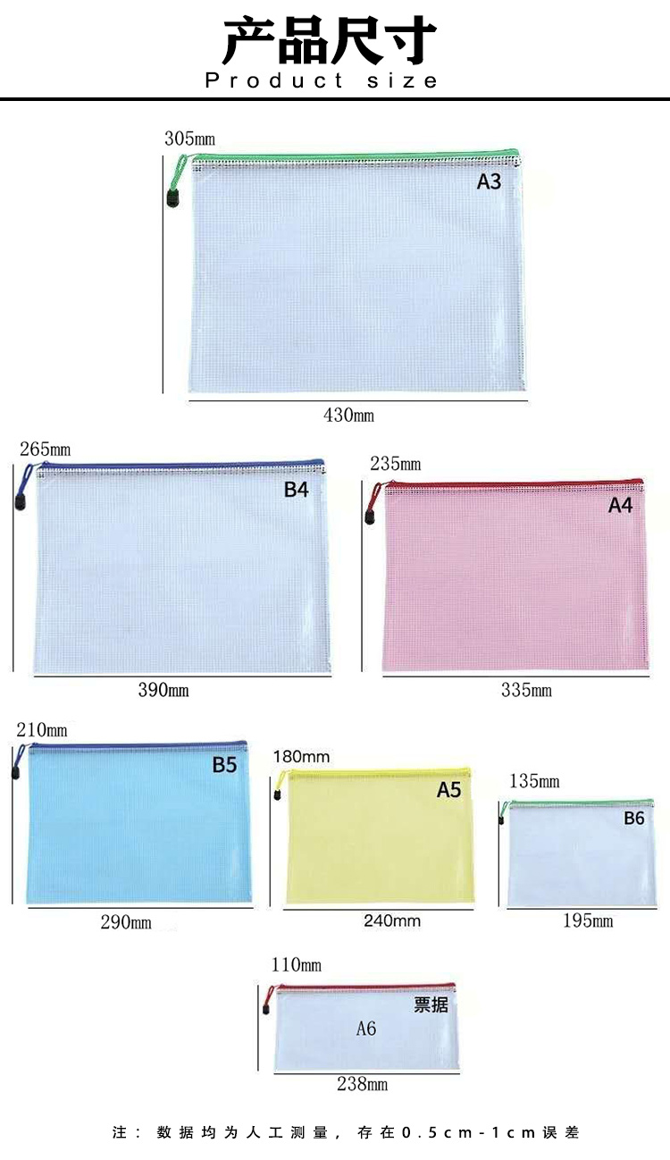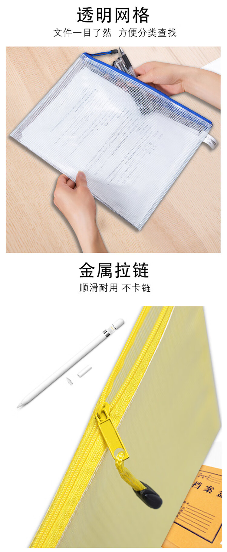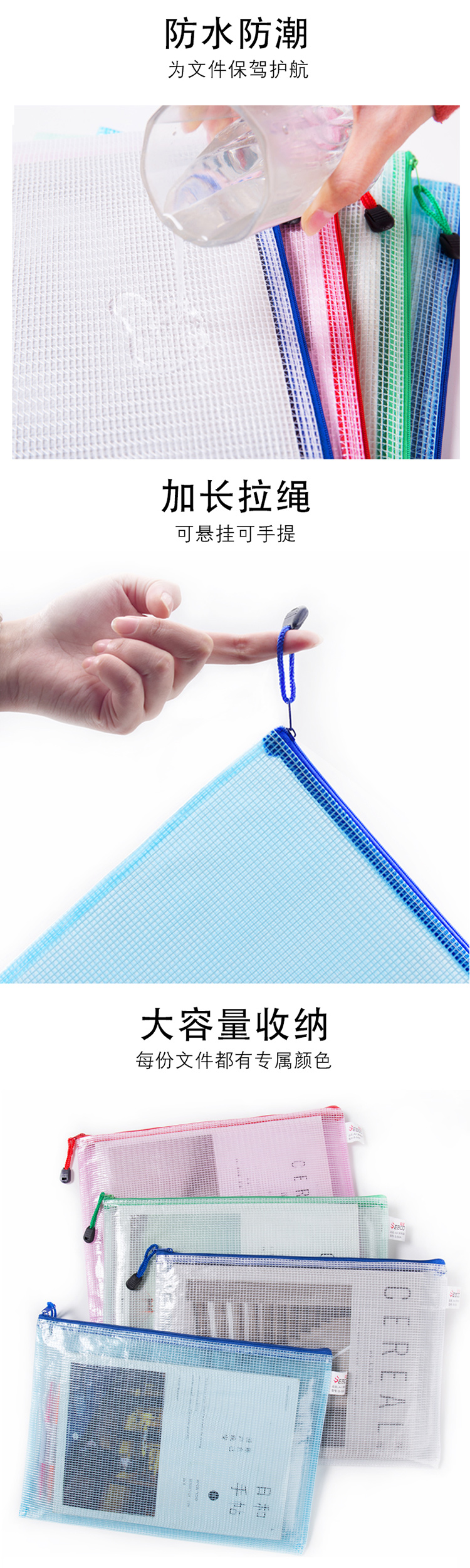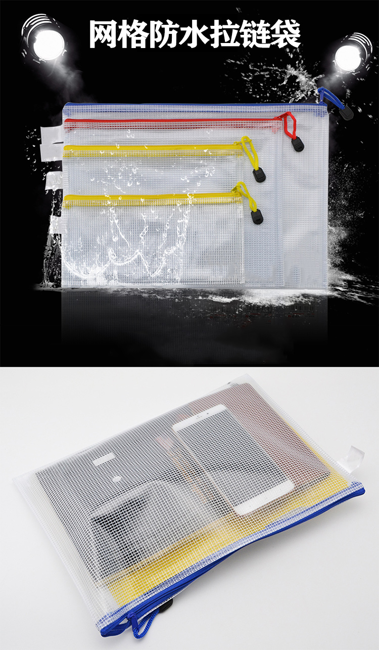 海斯迪克 网格拉链文件袋 KP17-1 颜色随机 B6(13.5cm*19.5cm) 1个