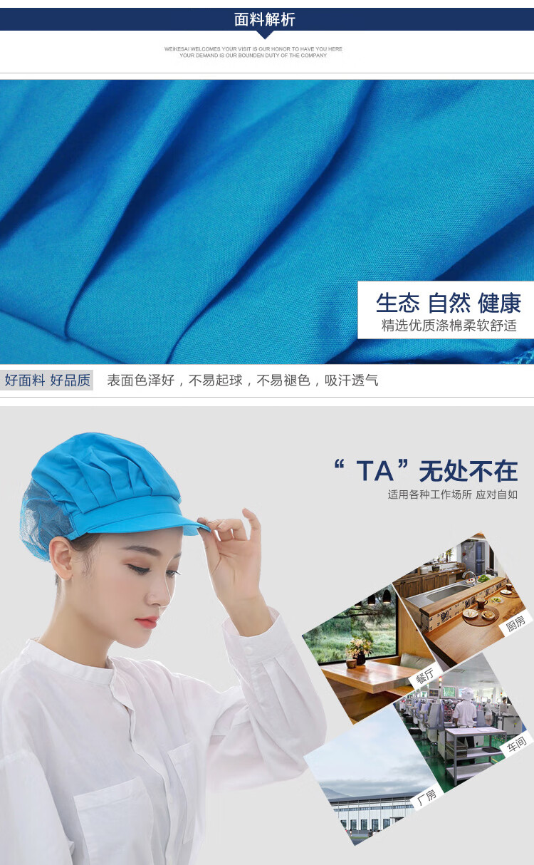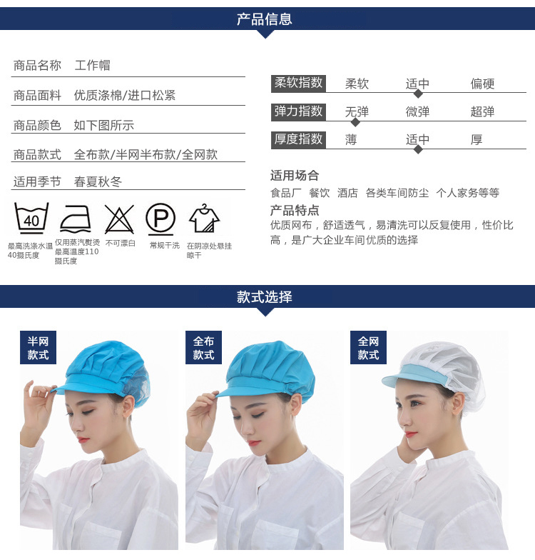海斯迪克 防尘透气工作帽 KG21-1 天蓝半网半布 1顶